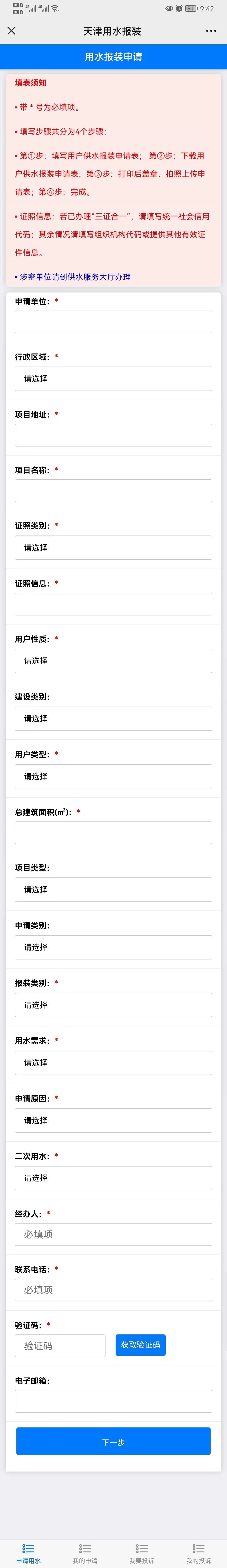 申請(qǐng)人點(diǎn)擊:用水報(bào)裝申請(qǐng)如圖所示: