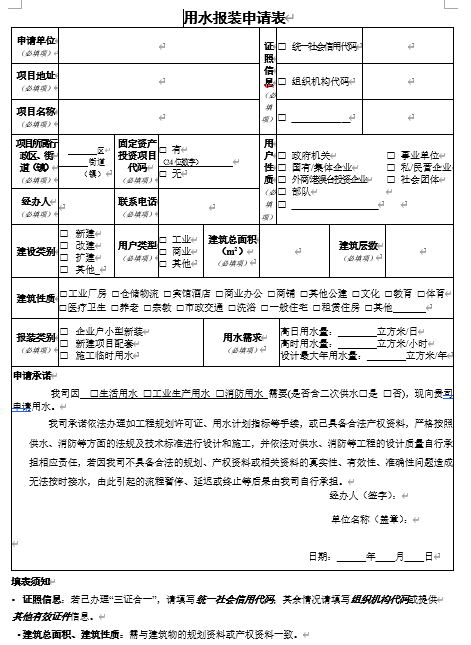 用水報(bào)裝申請(qǐng)表:下載