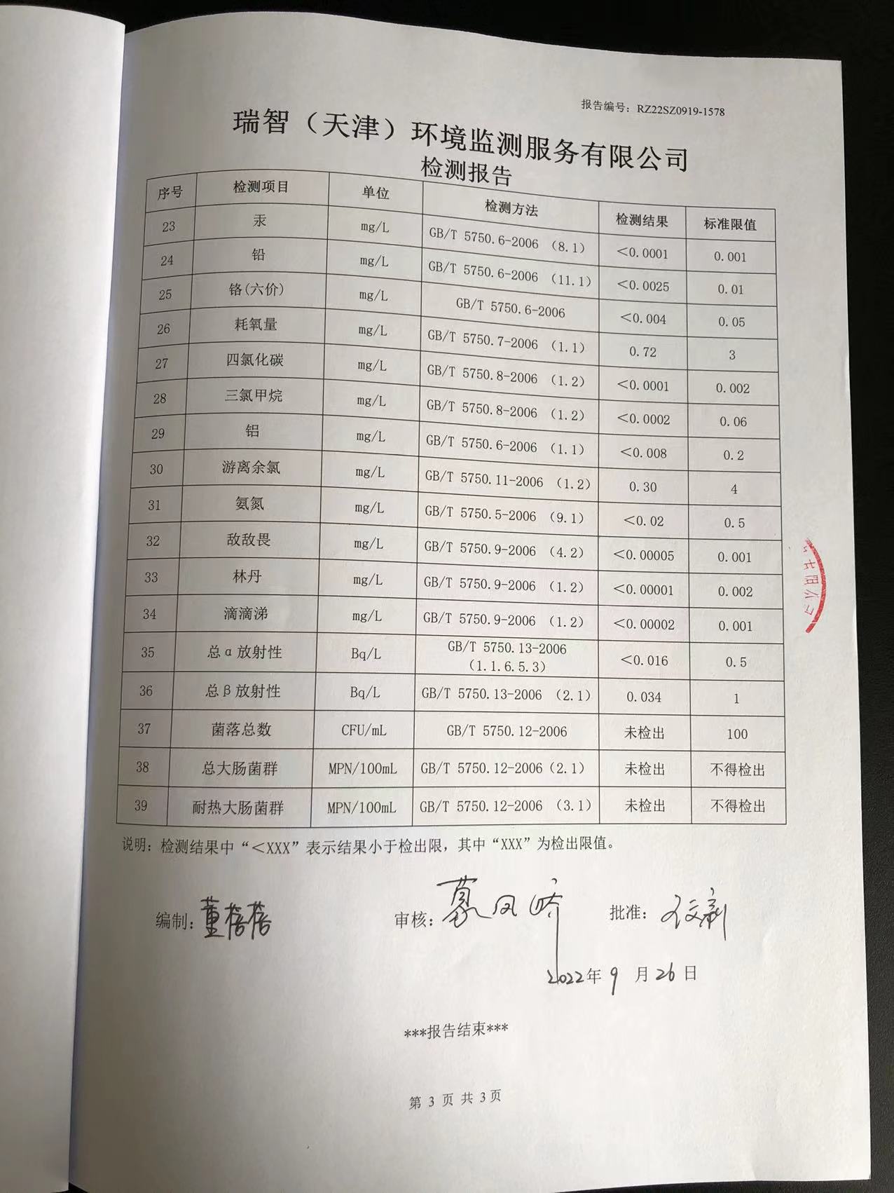 九月份檢測報告
