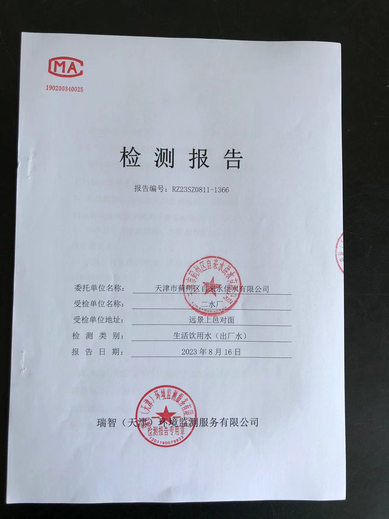 2023年8月份水質(zhì)檢測(cè)報(bào)告