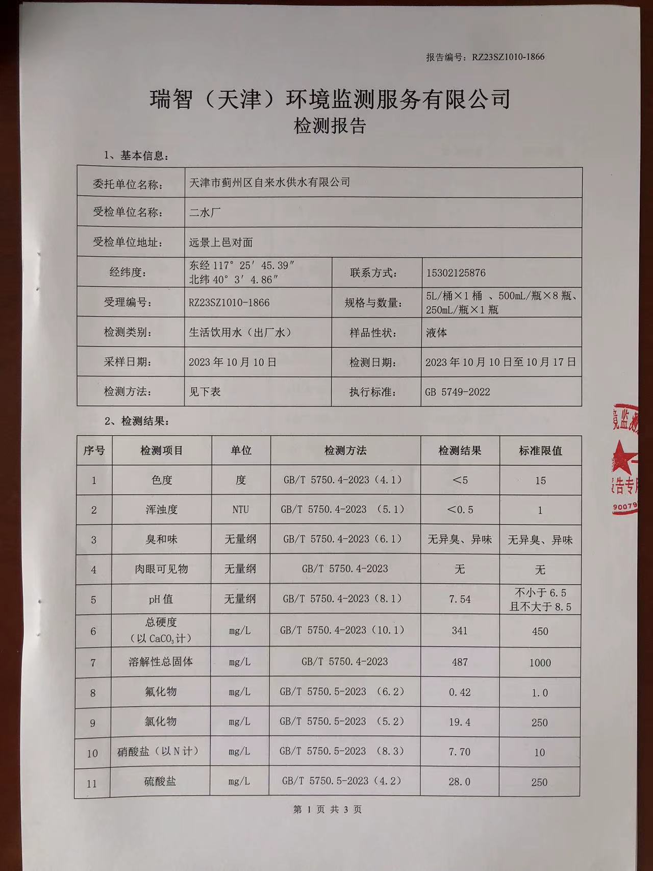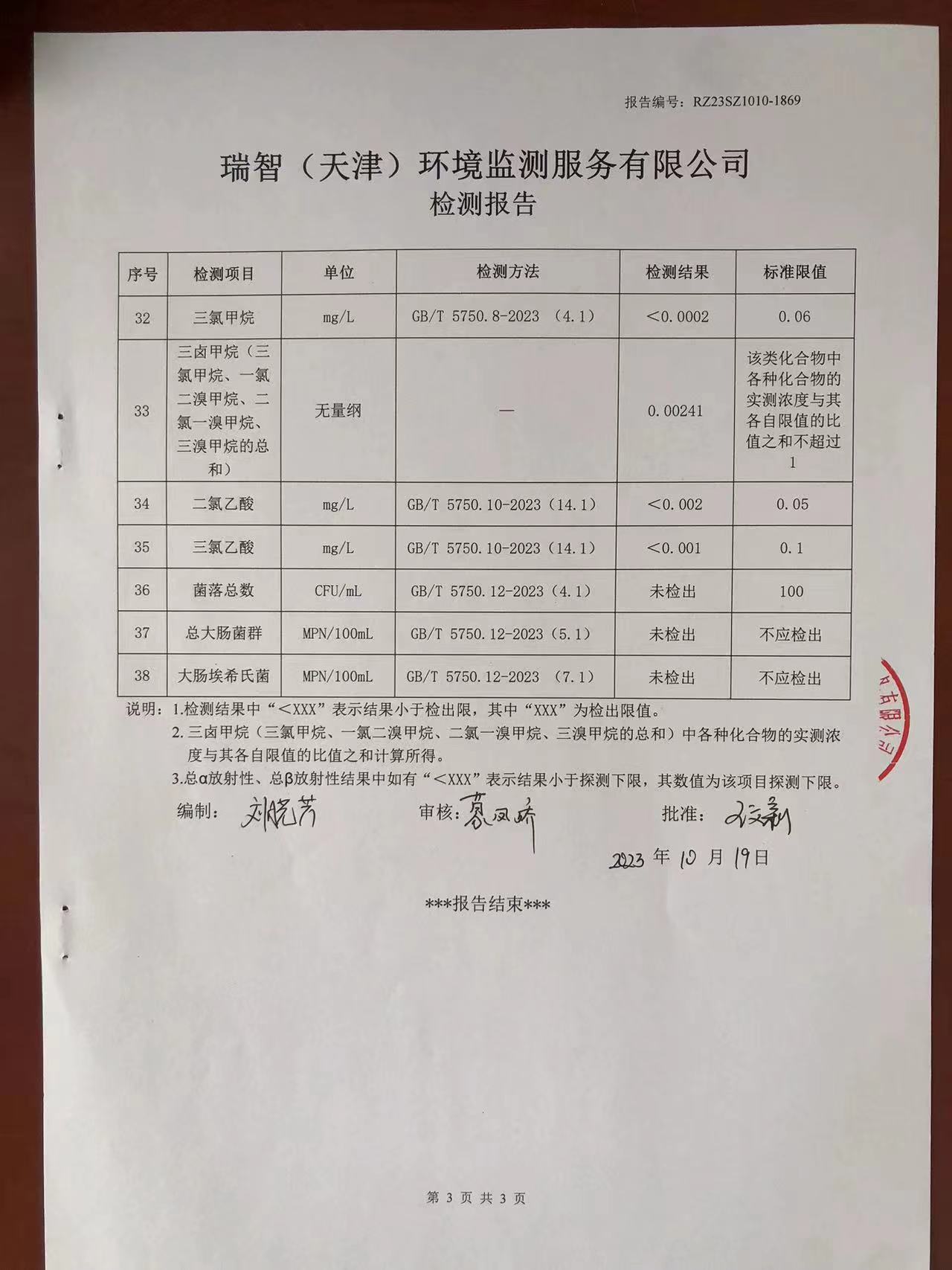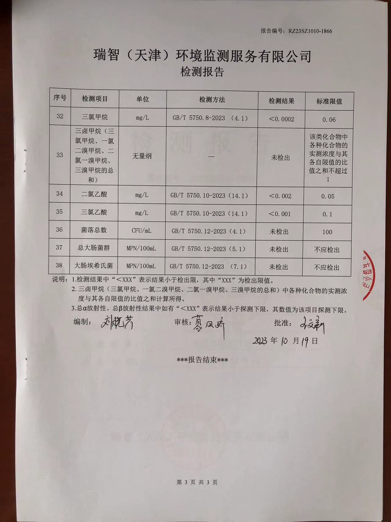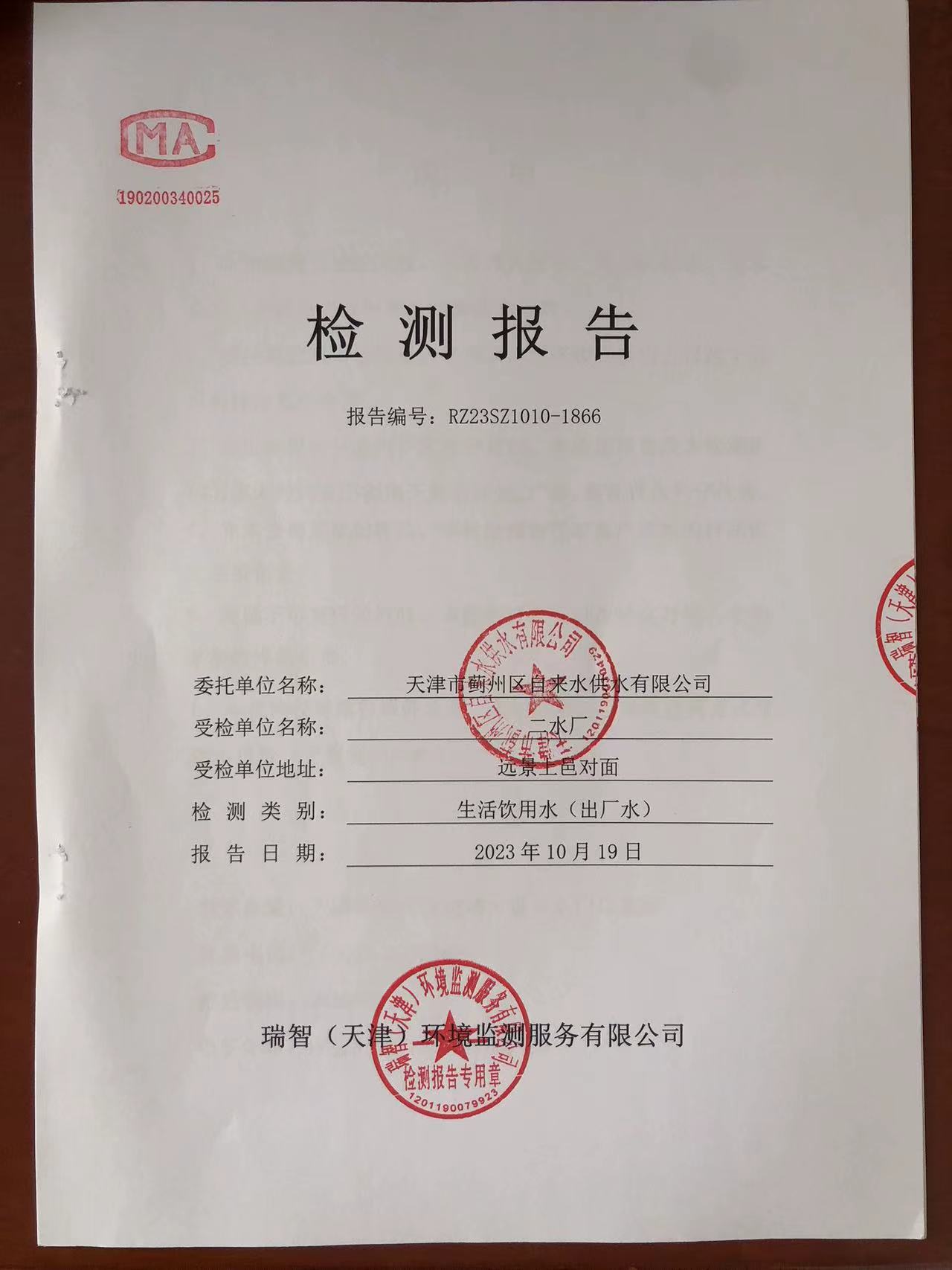 2023年10月份水質(zhì)檢測報告