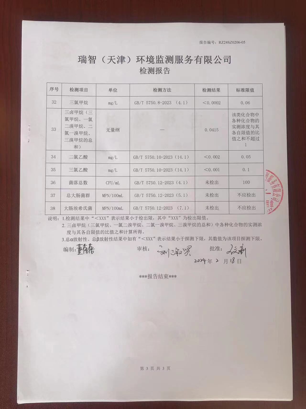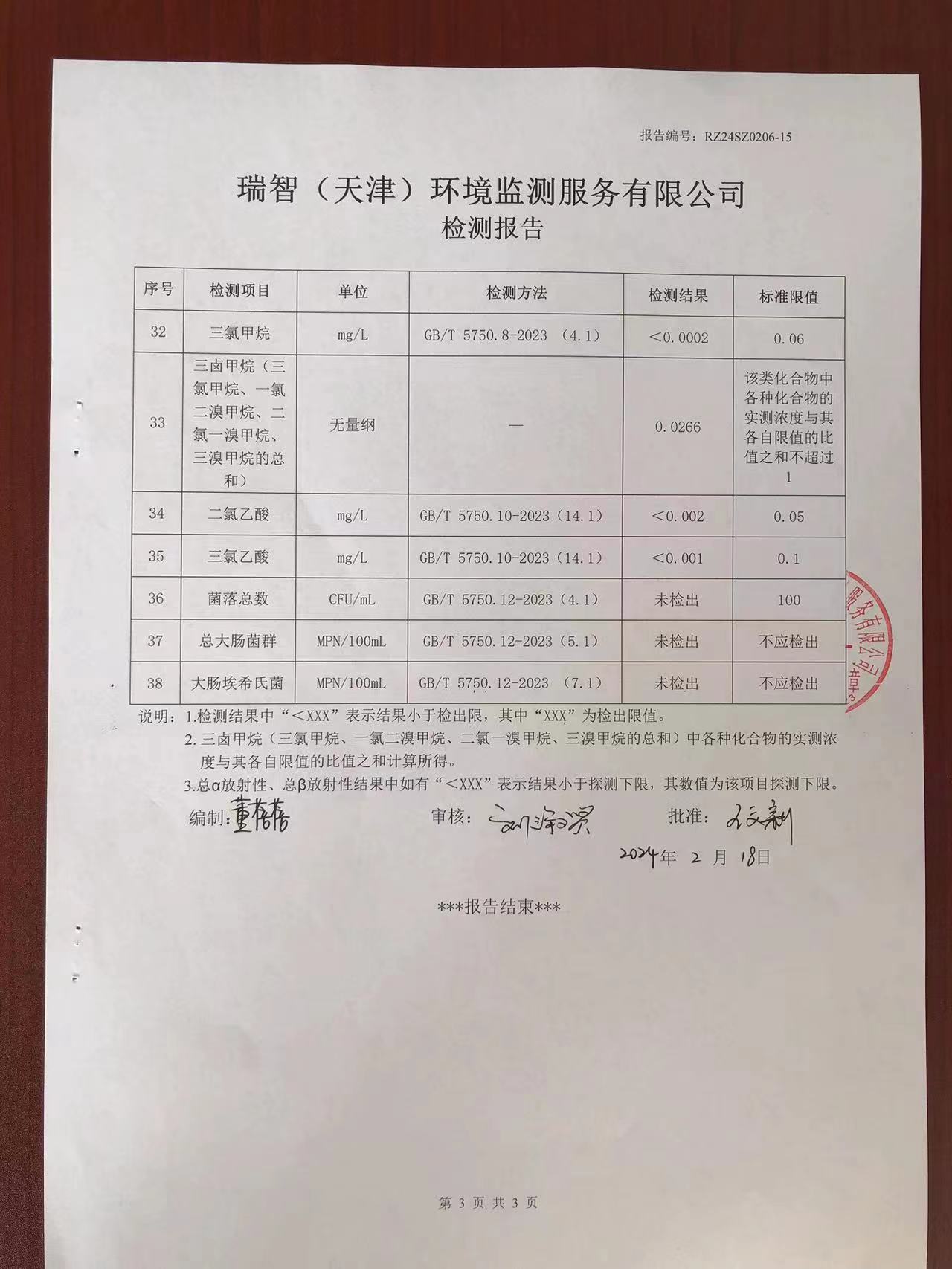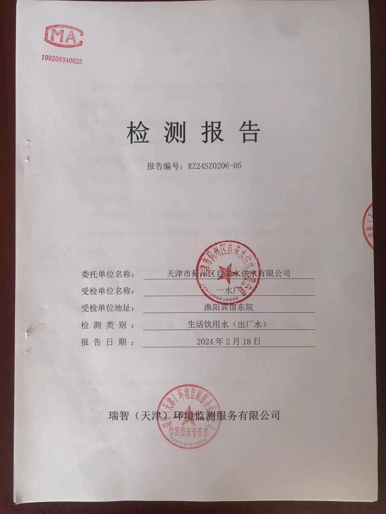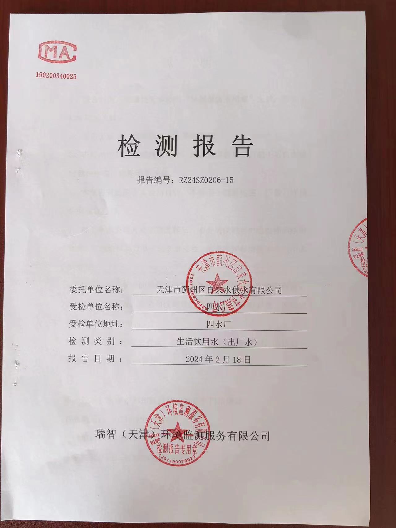 2024年2月份水質(zhì)檢測報告