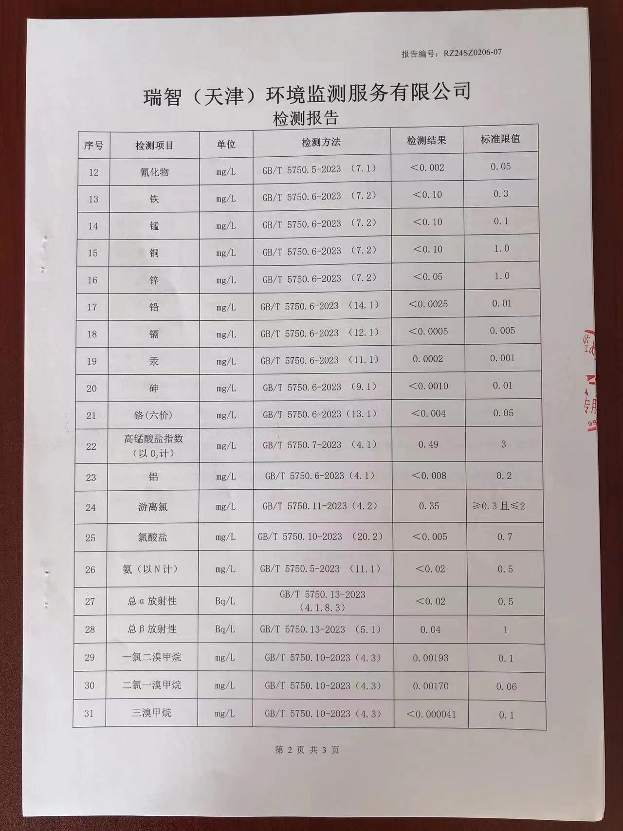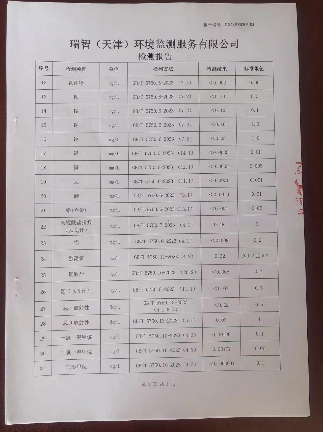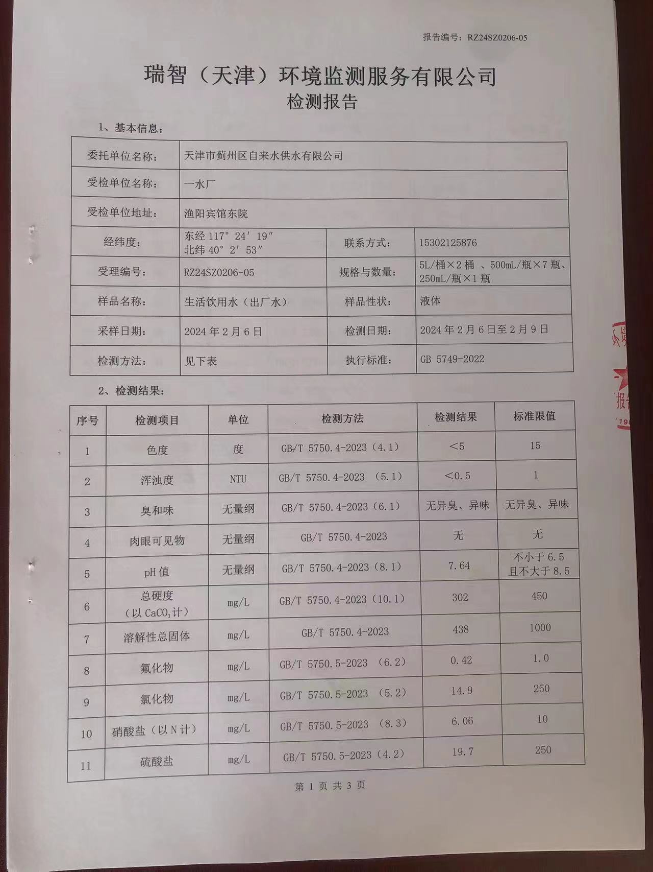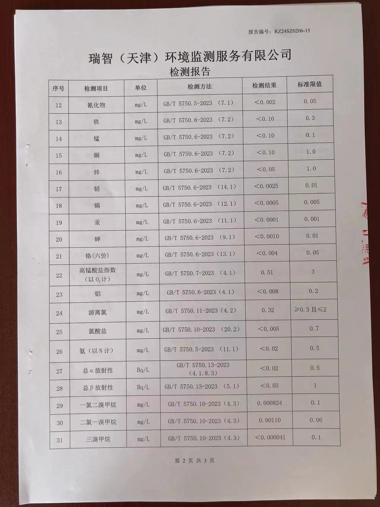 2024年2月份水質(zhì)檢測報告