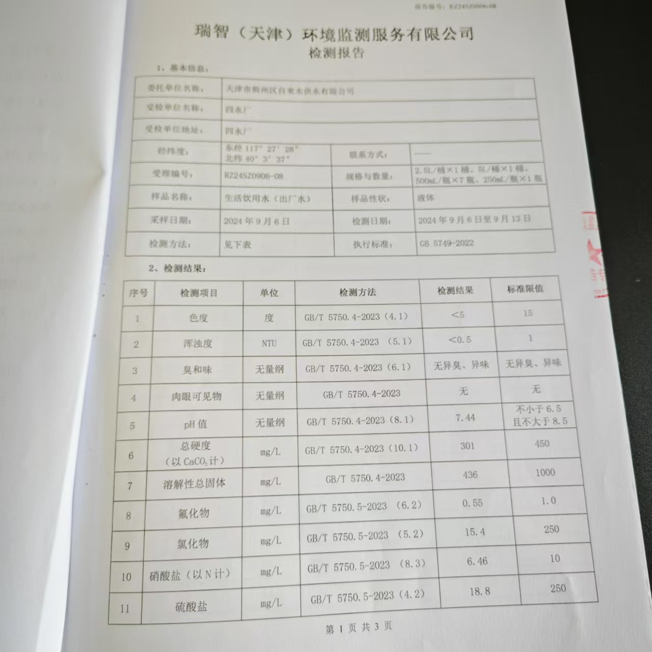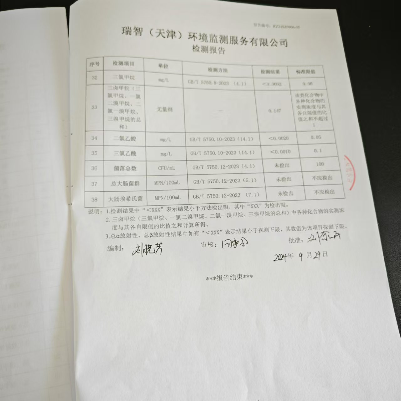 2024年9月份水質(zhì)檢測(cè)報(bào)告