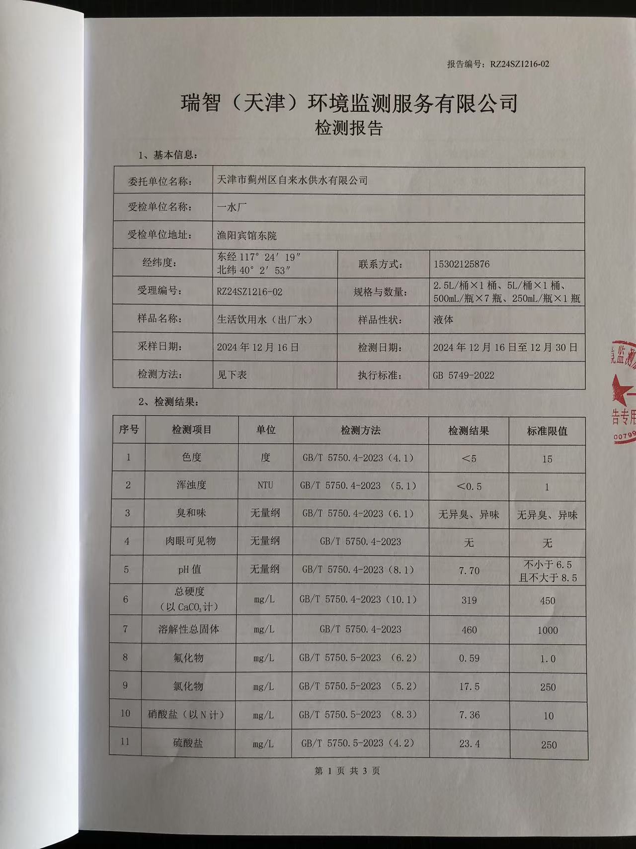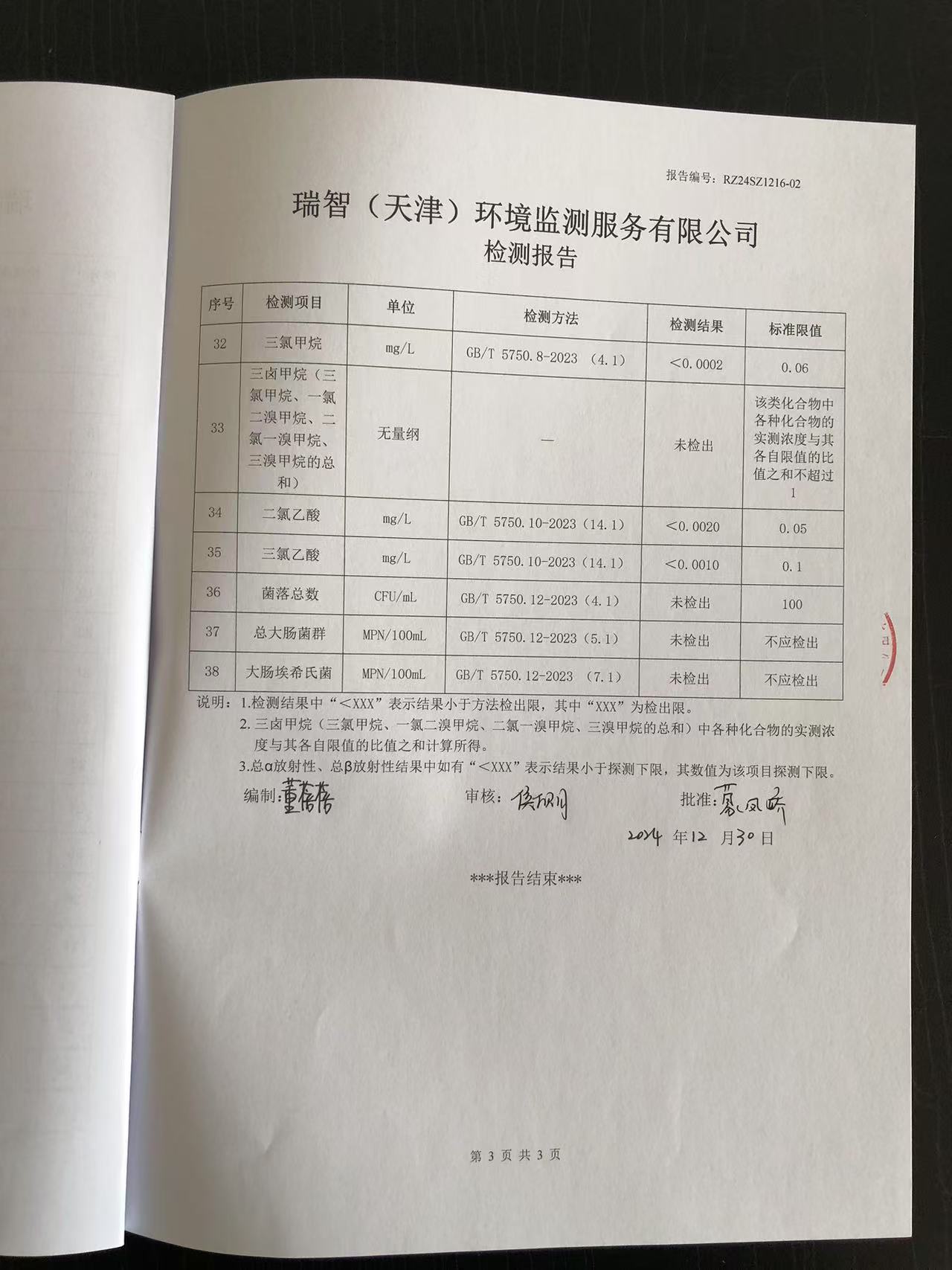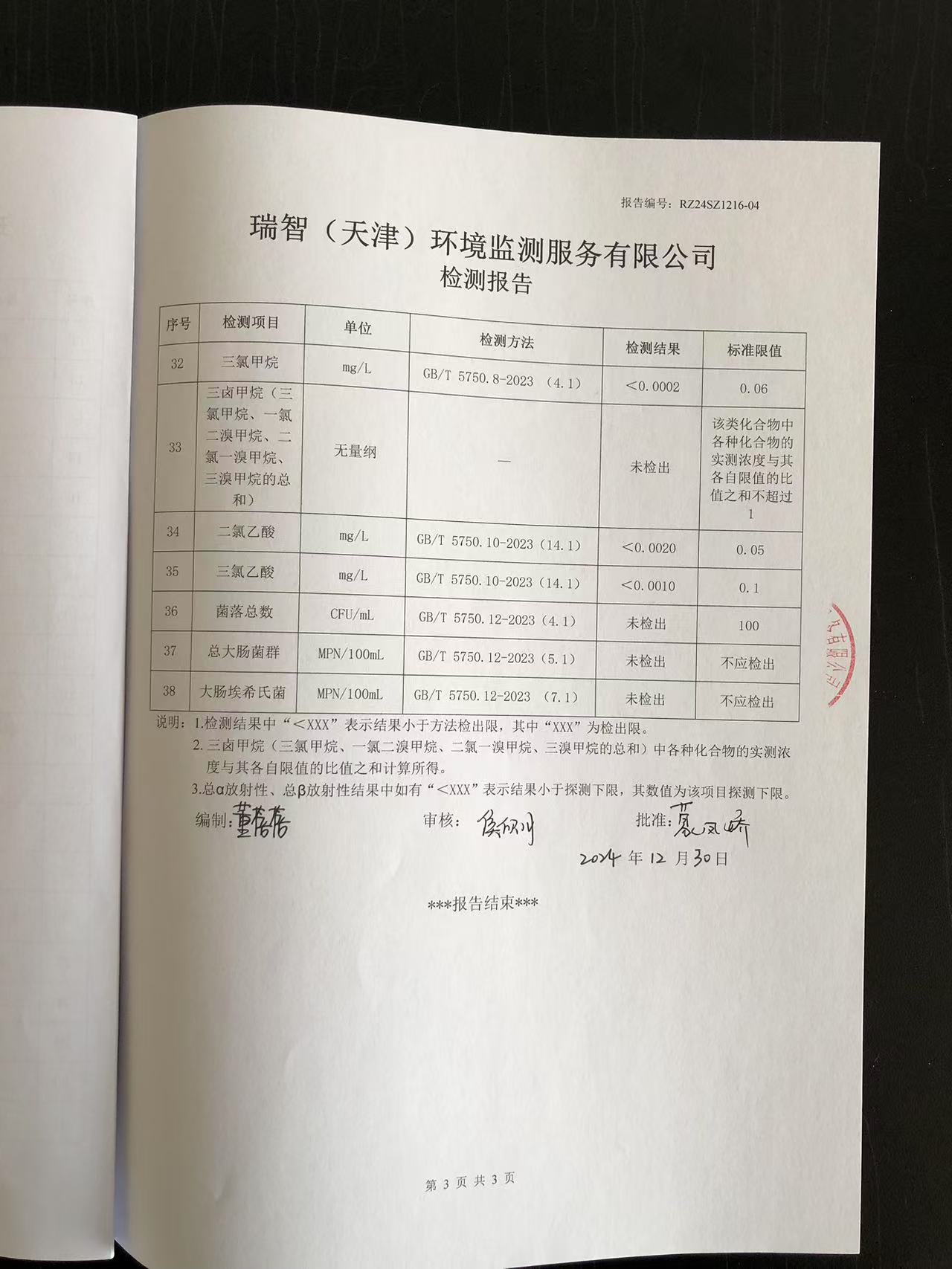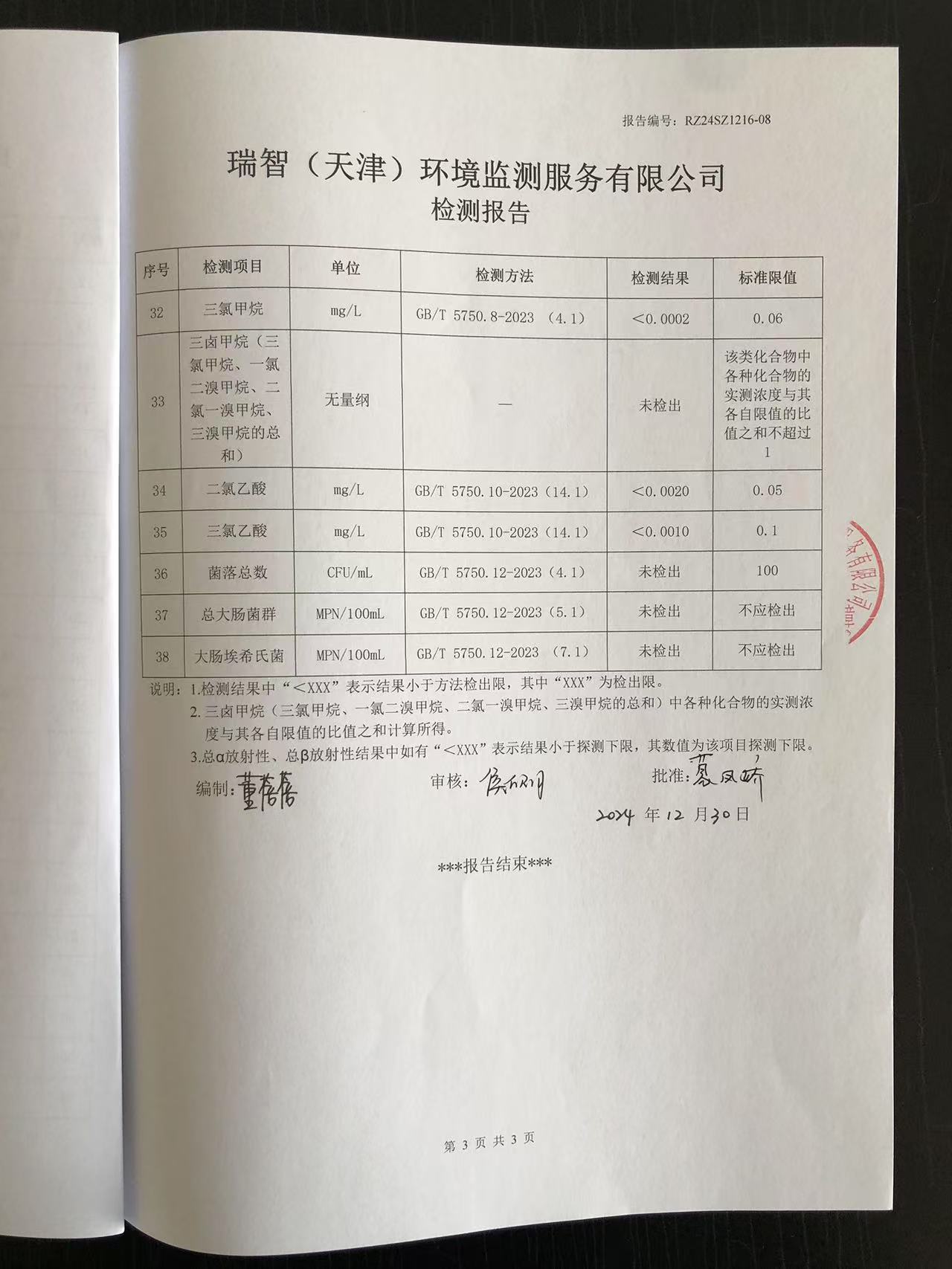 2024年12月份水質(zhì)檢測(cè)報(bào)告