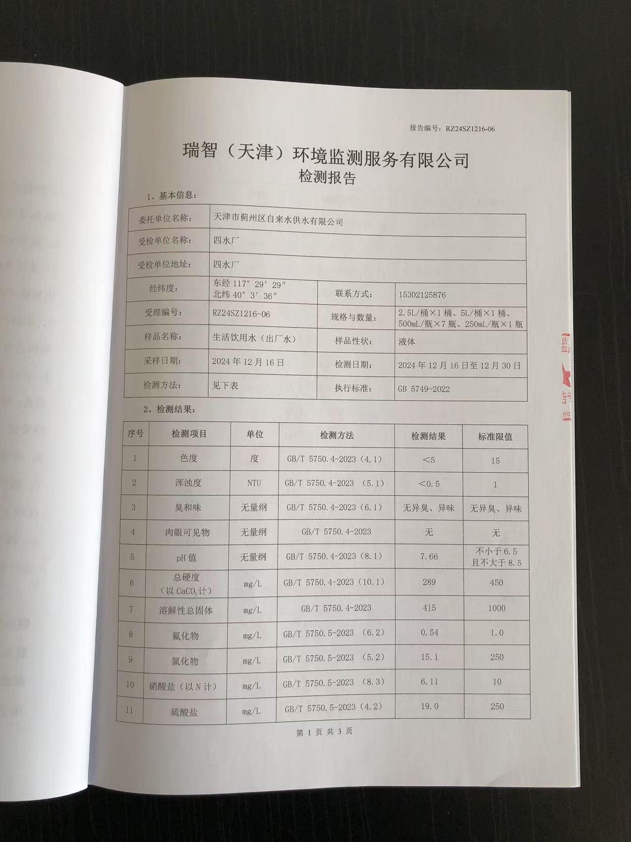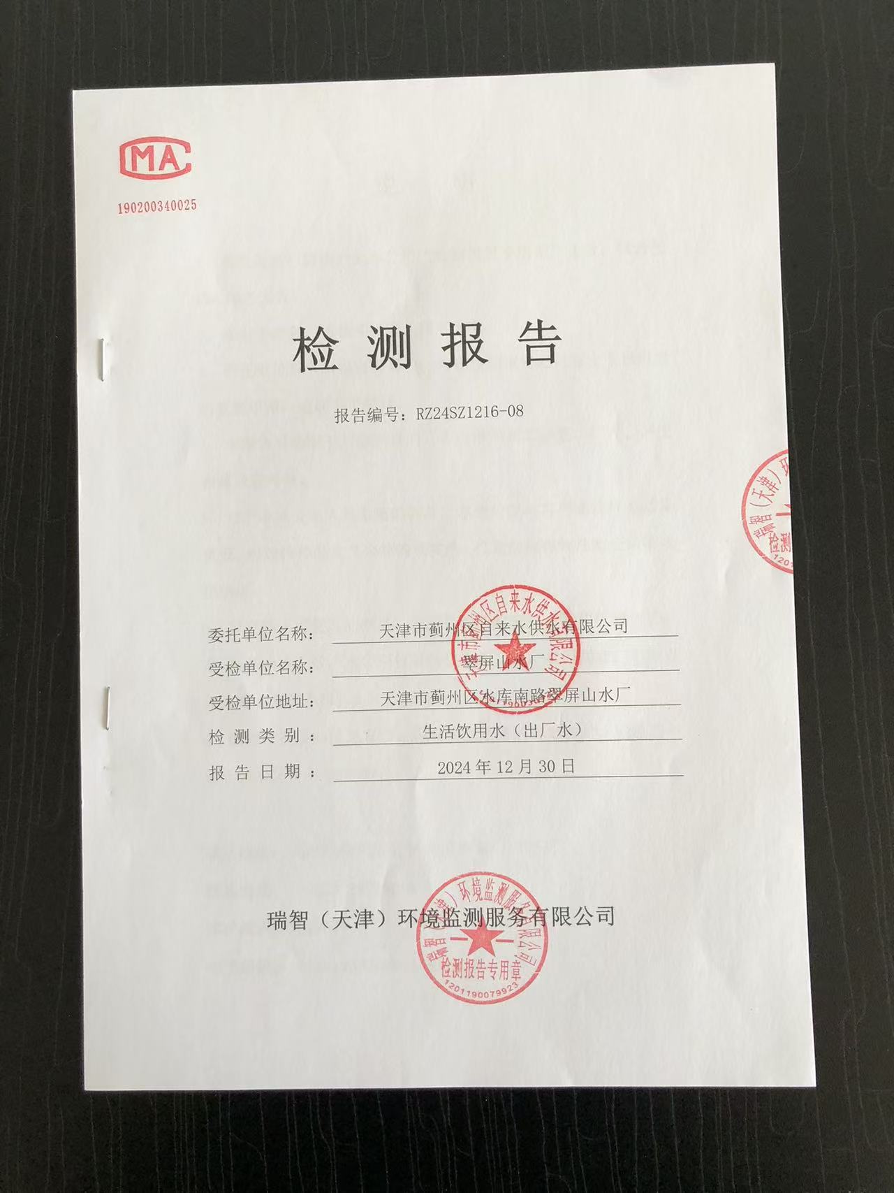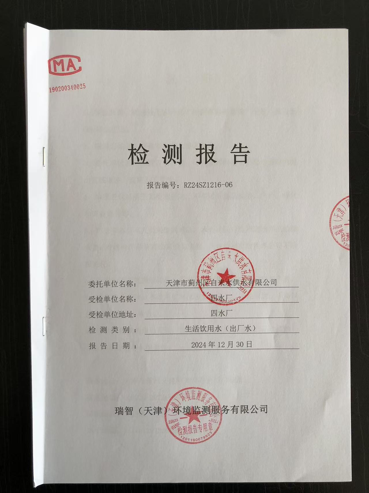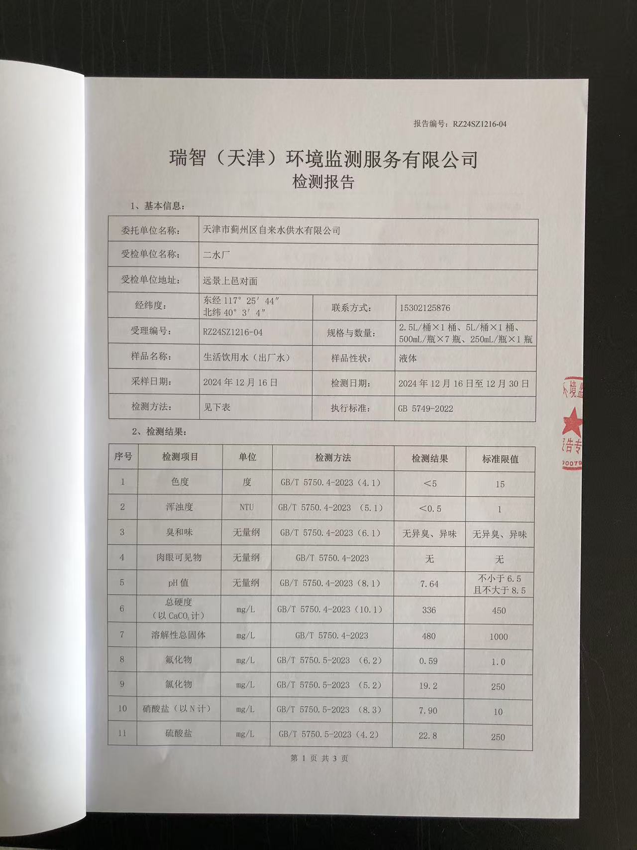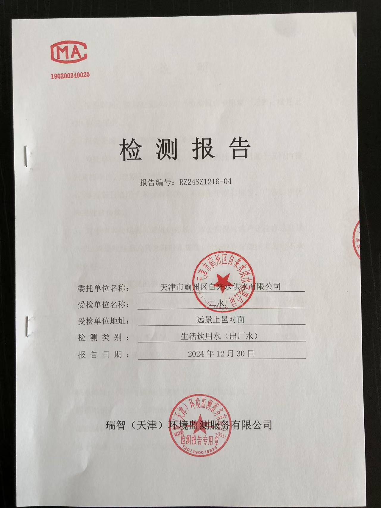 2024年12月份水質(zhì)檢測(cè)報(bào)告
