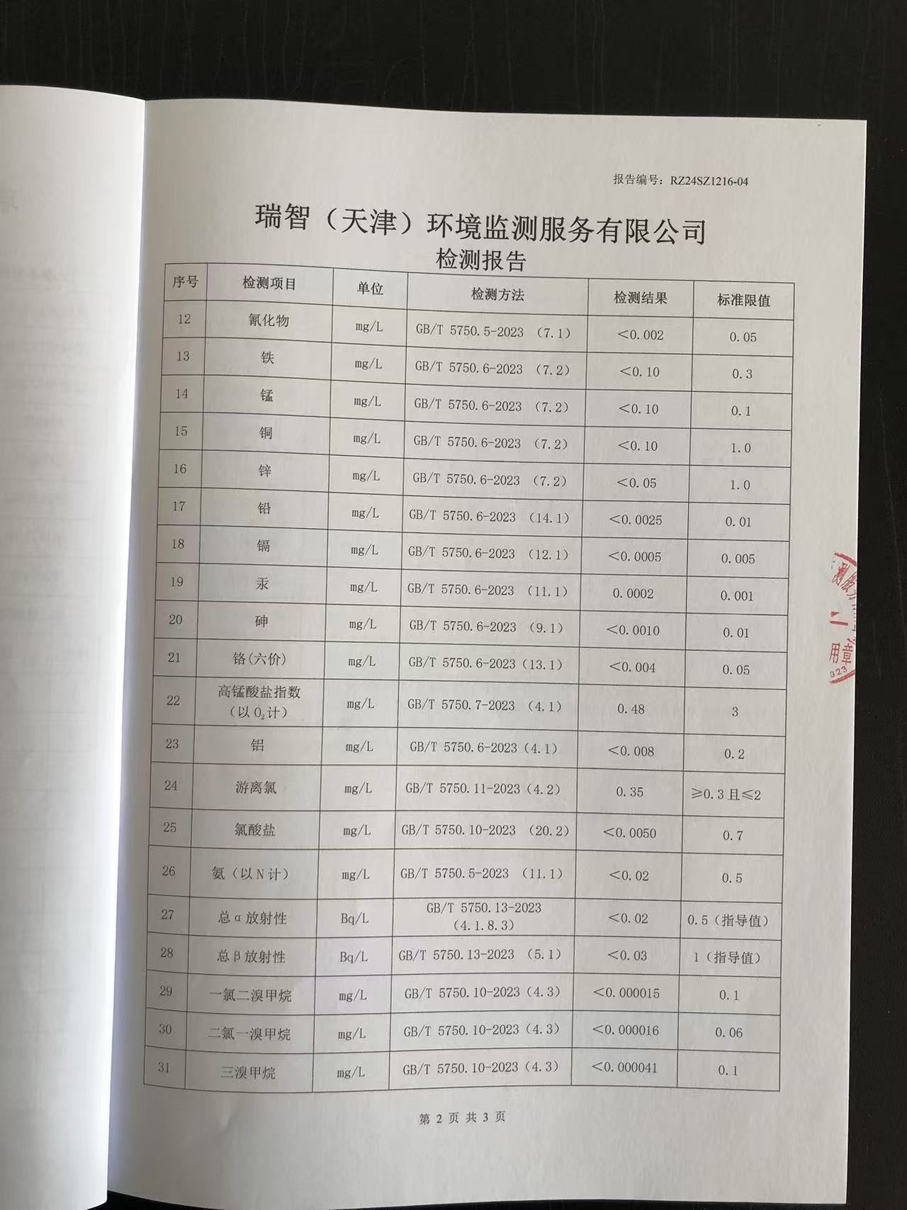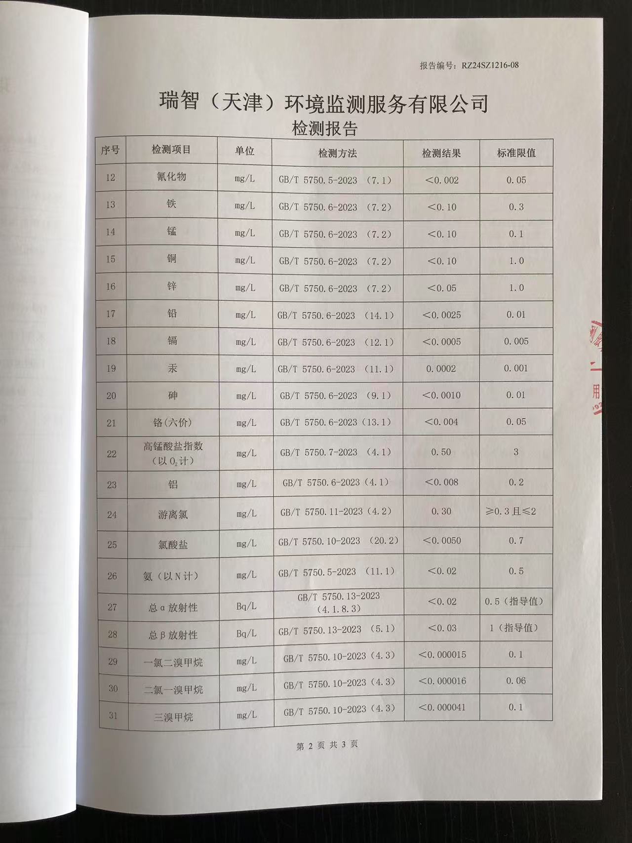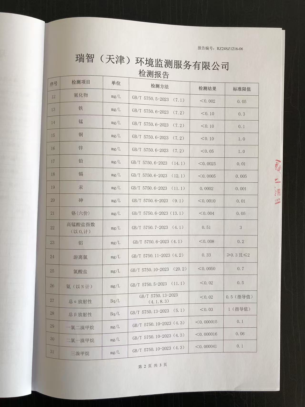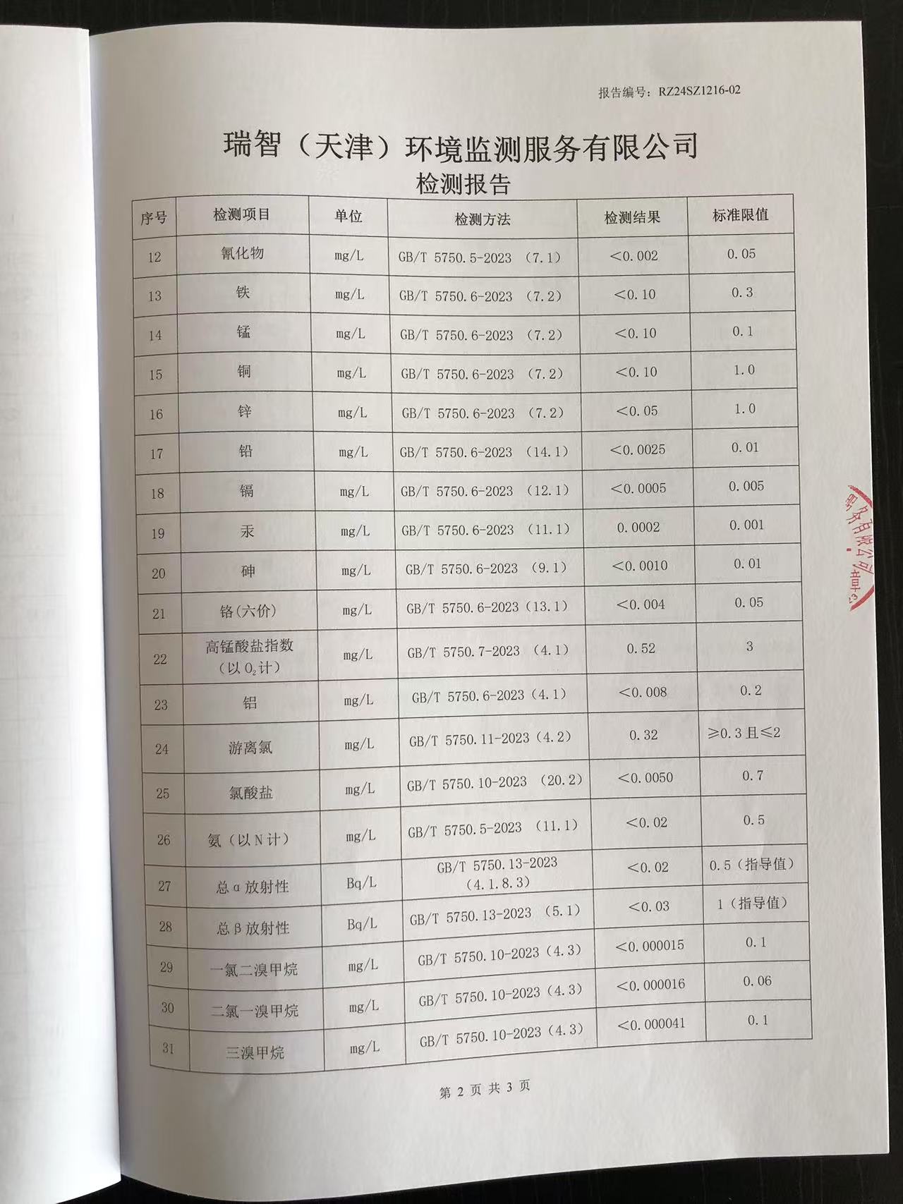 2024年12月份水質(zhì)檢測(cè)報(bào)告