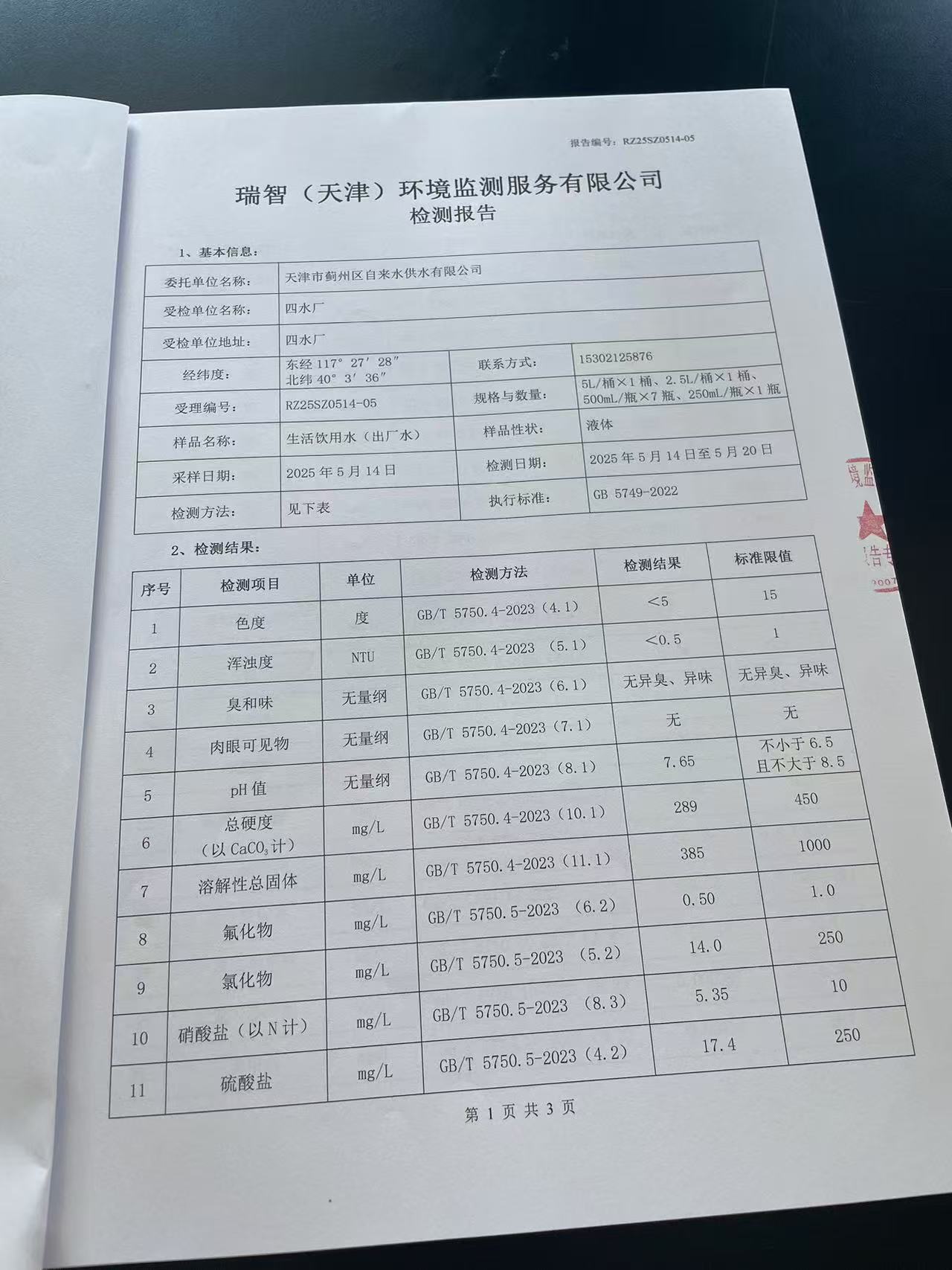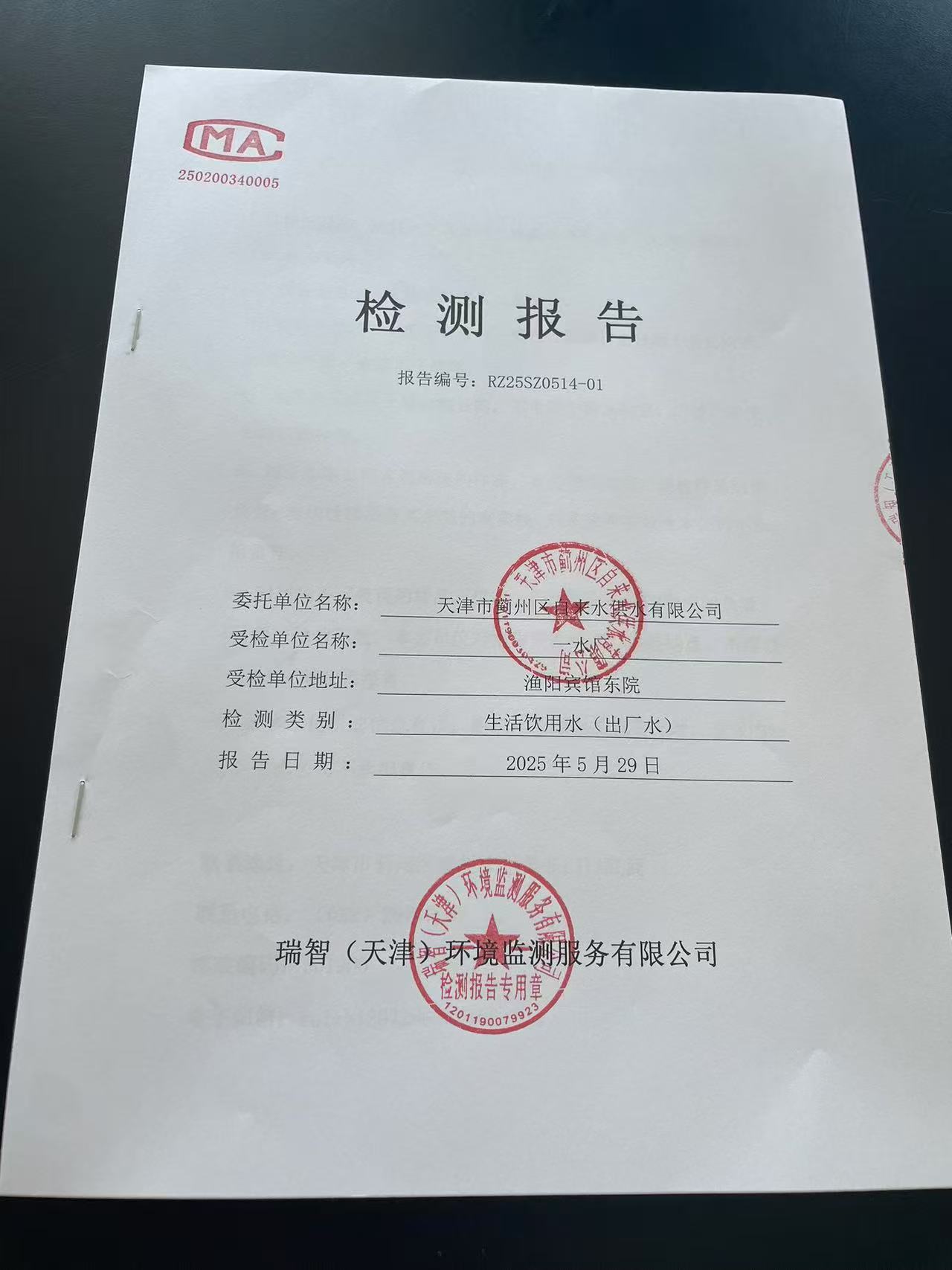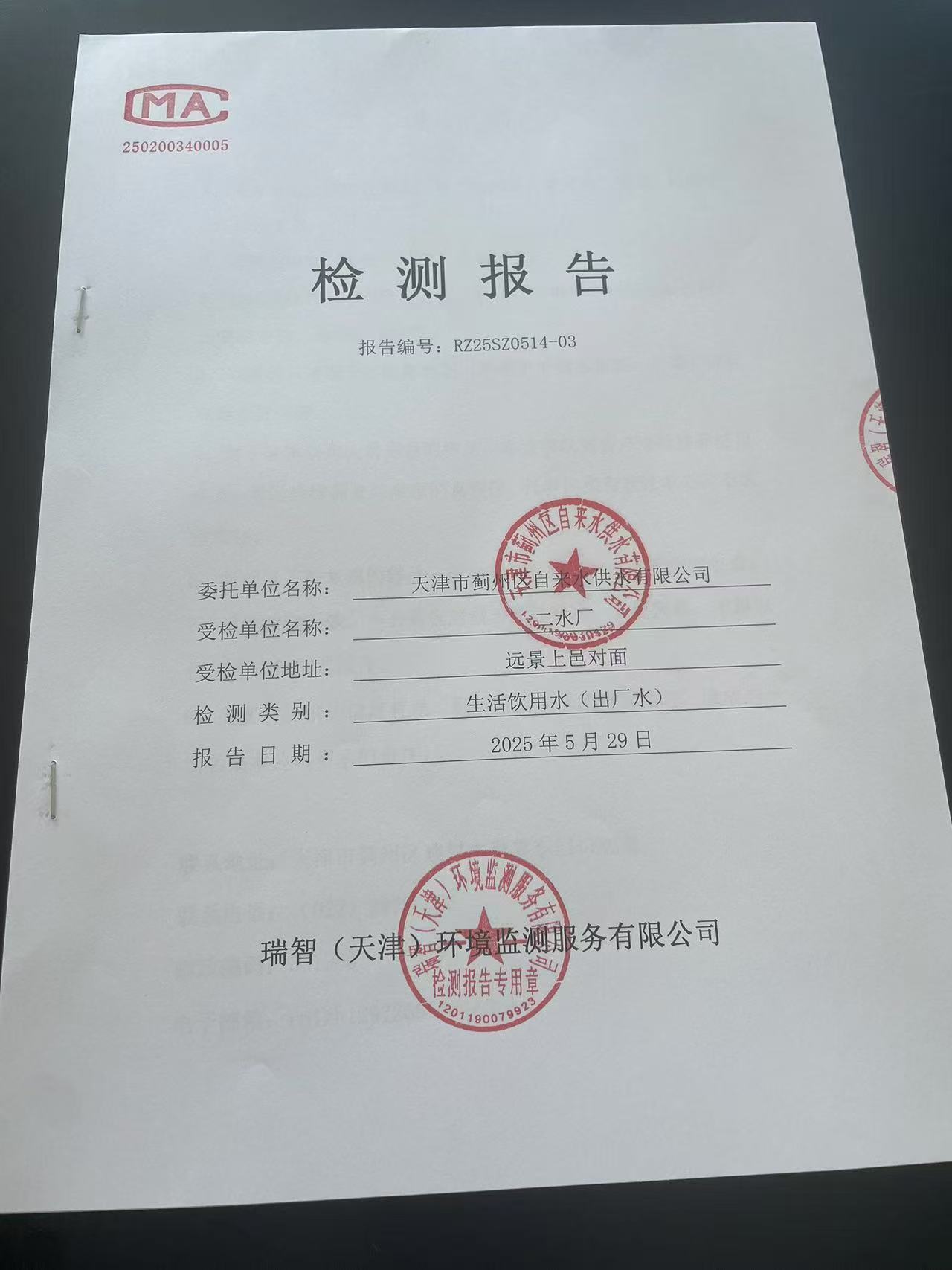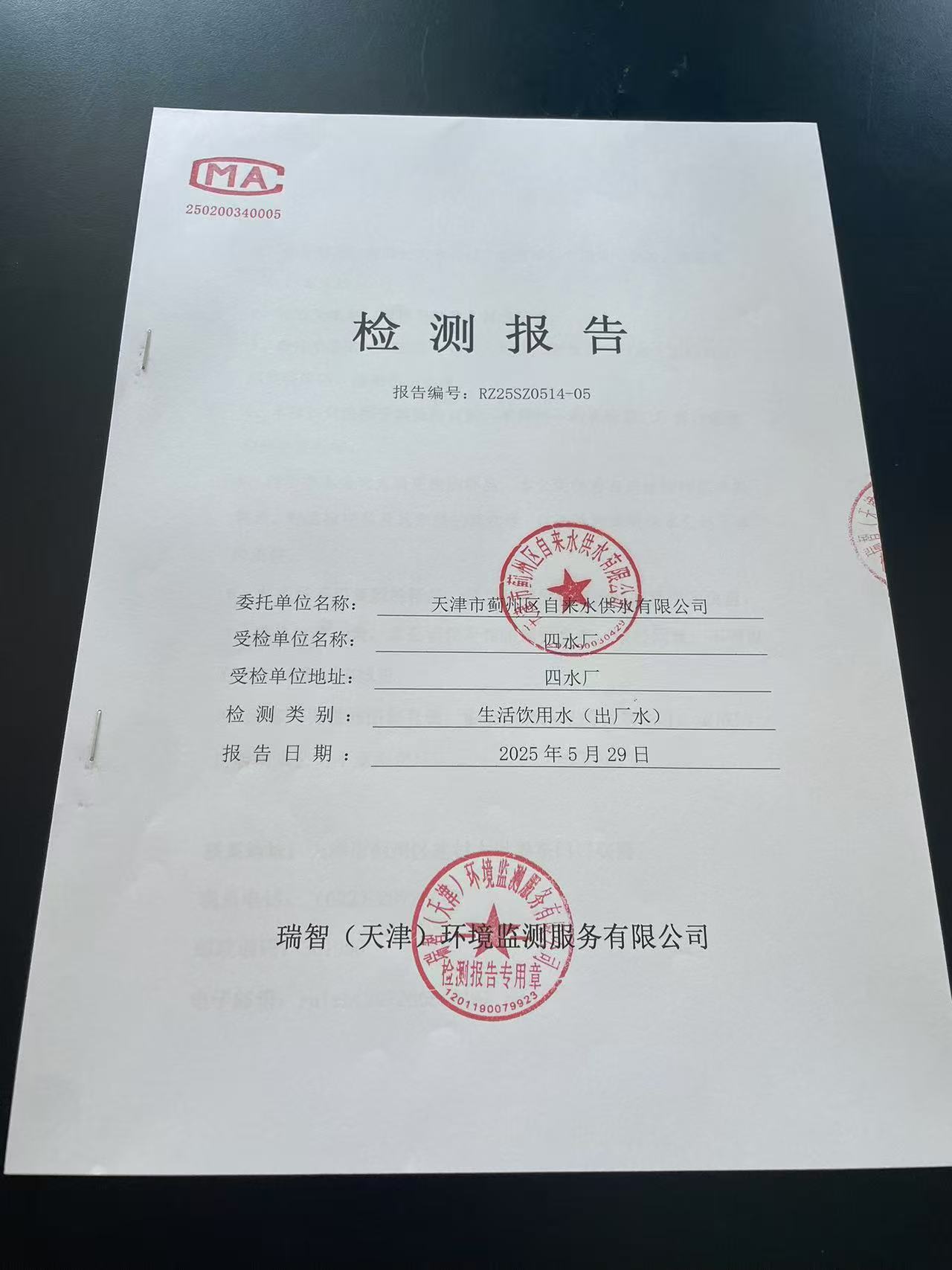 2025年5月份水質(zhì)檢測報告