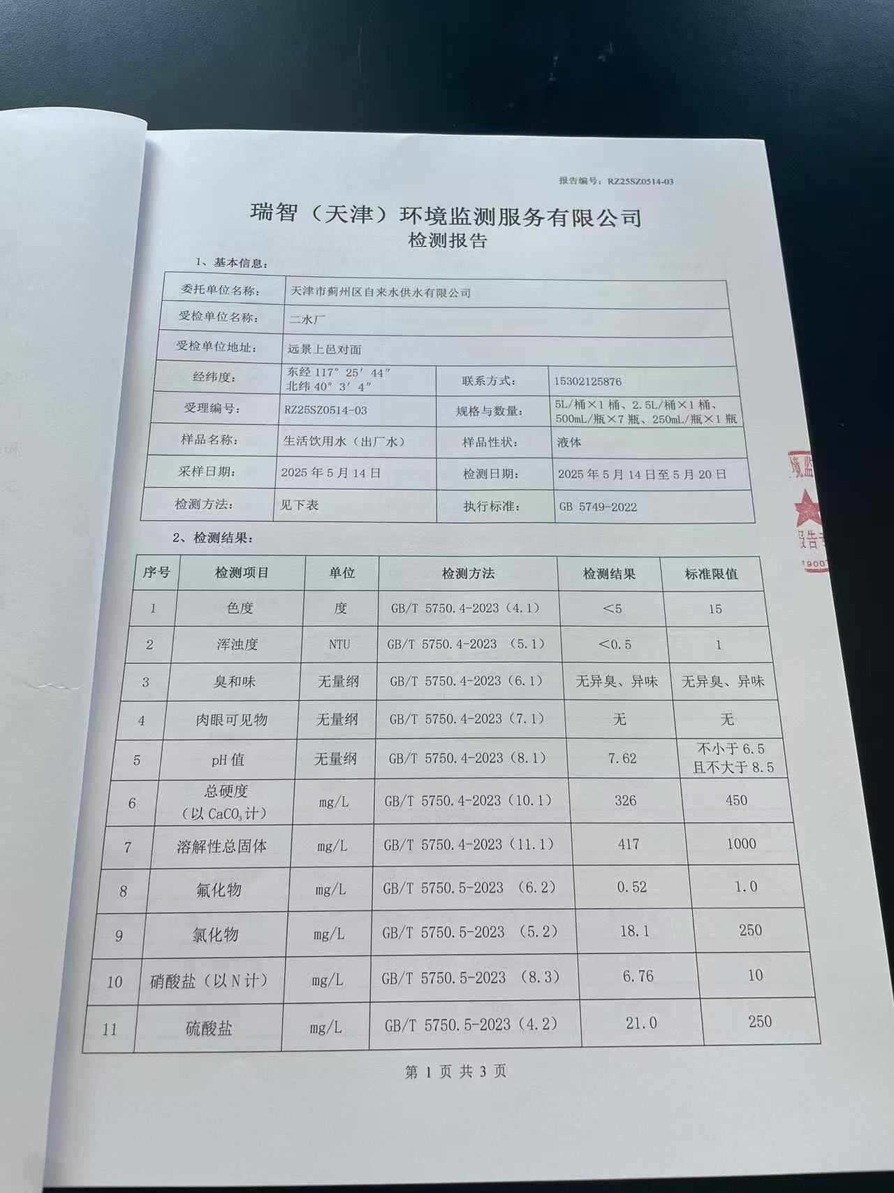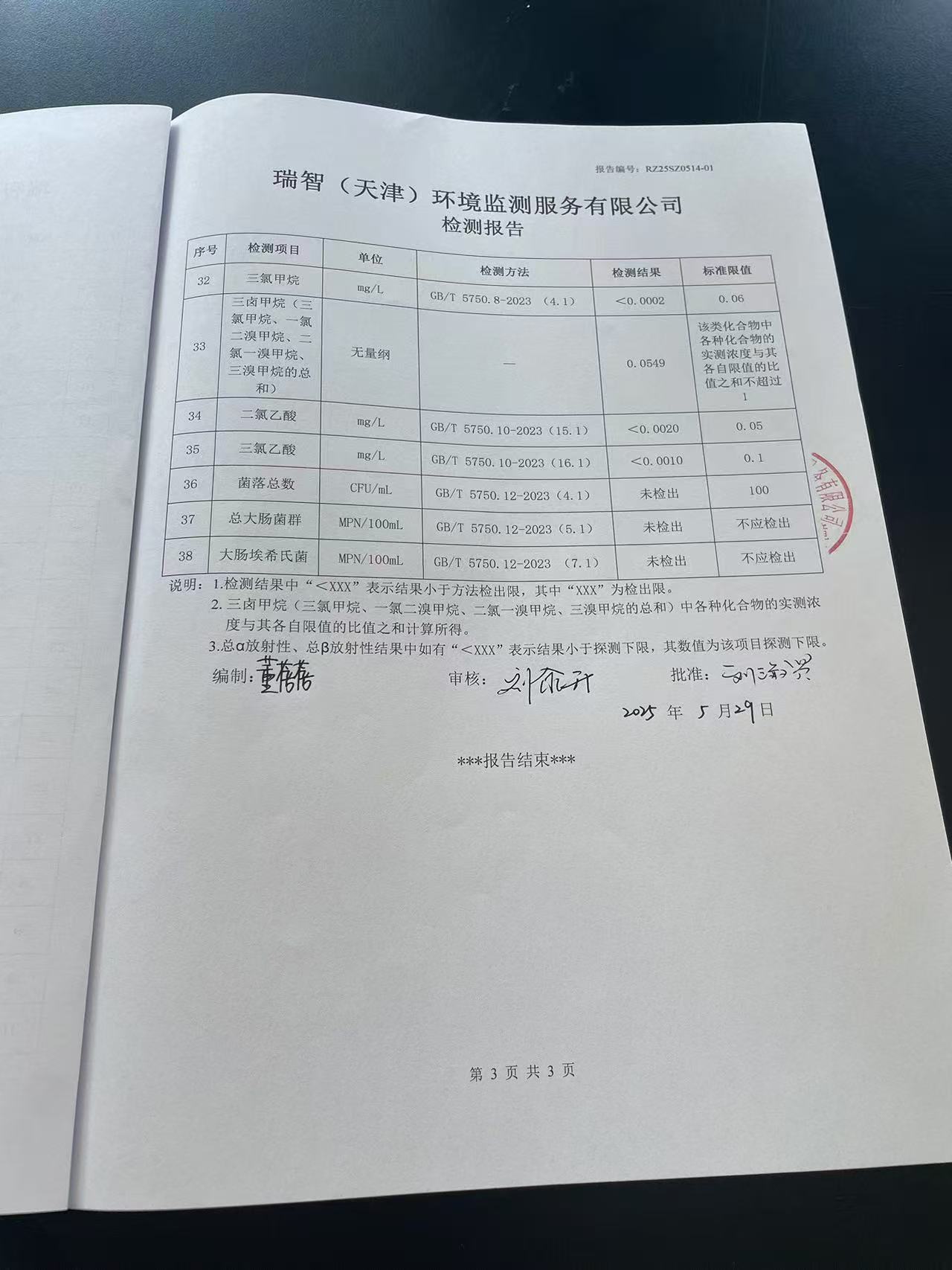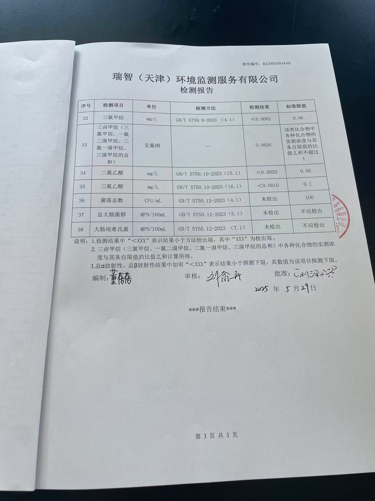 2025年5月份水質(zhì)檢測報告