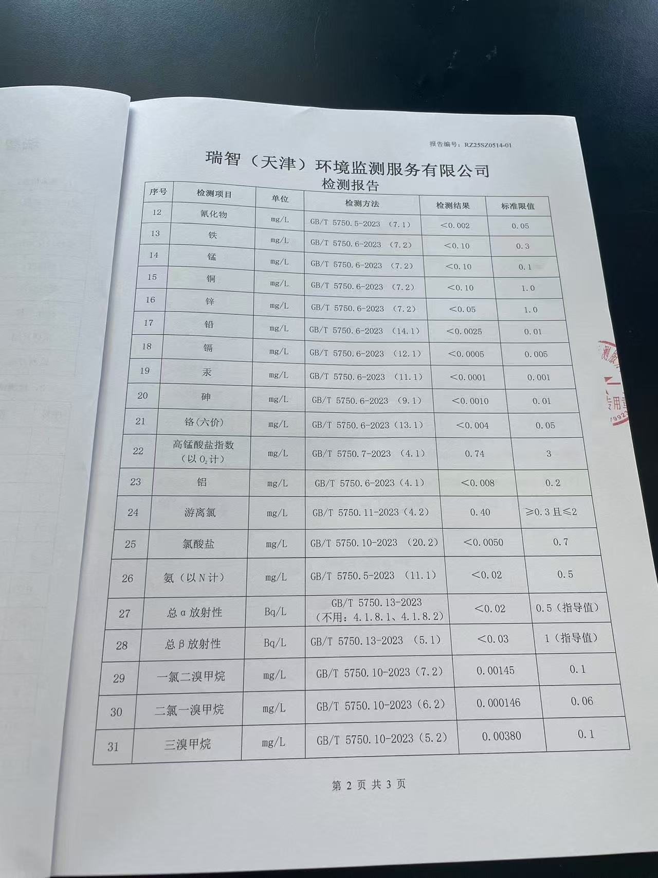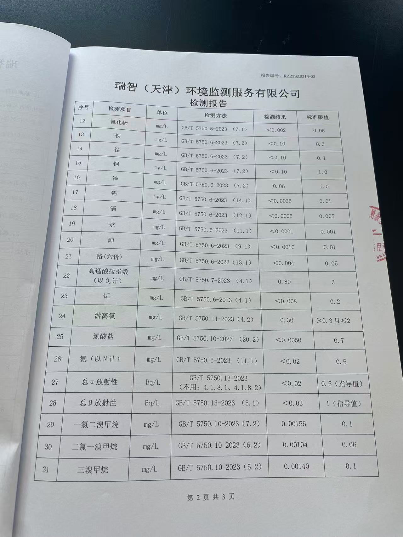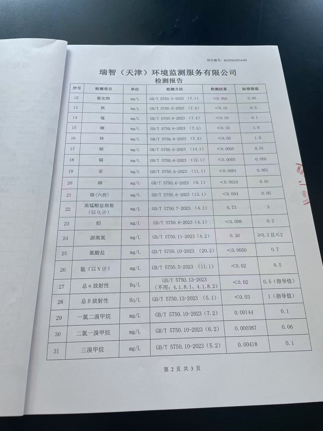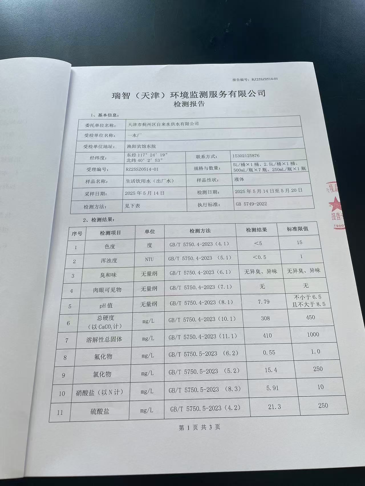 2025年5月份水質(zhì)檢測報告