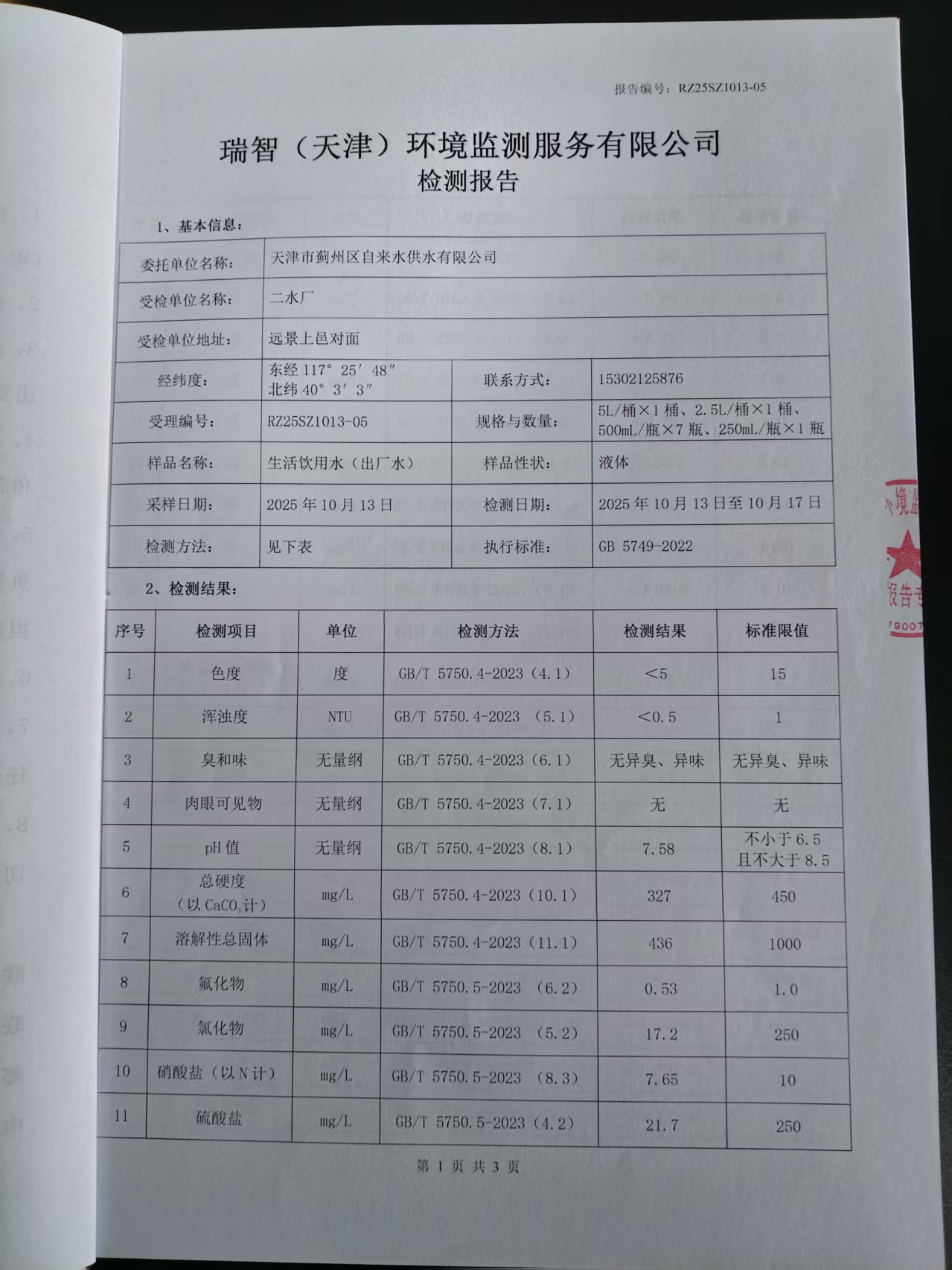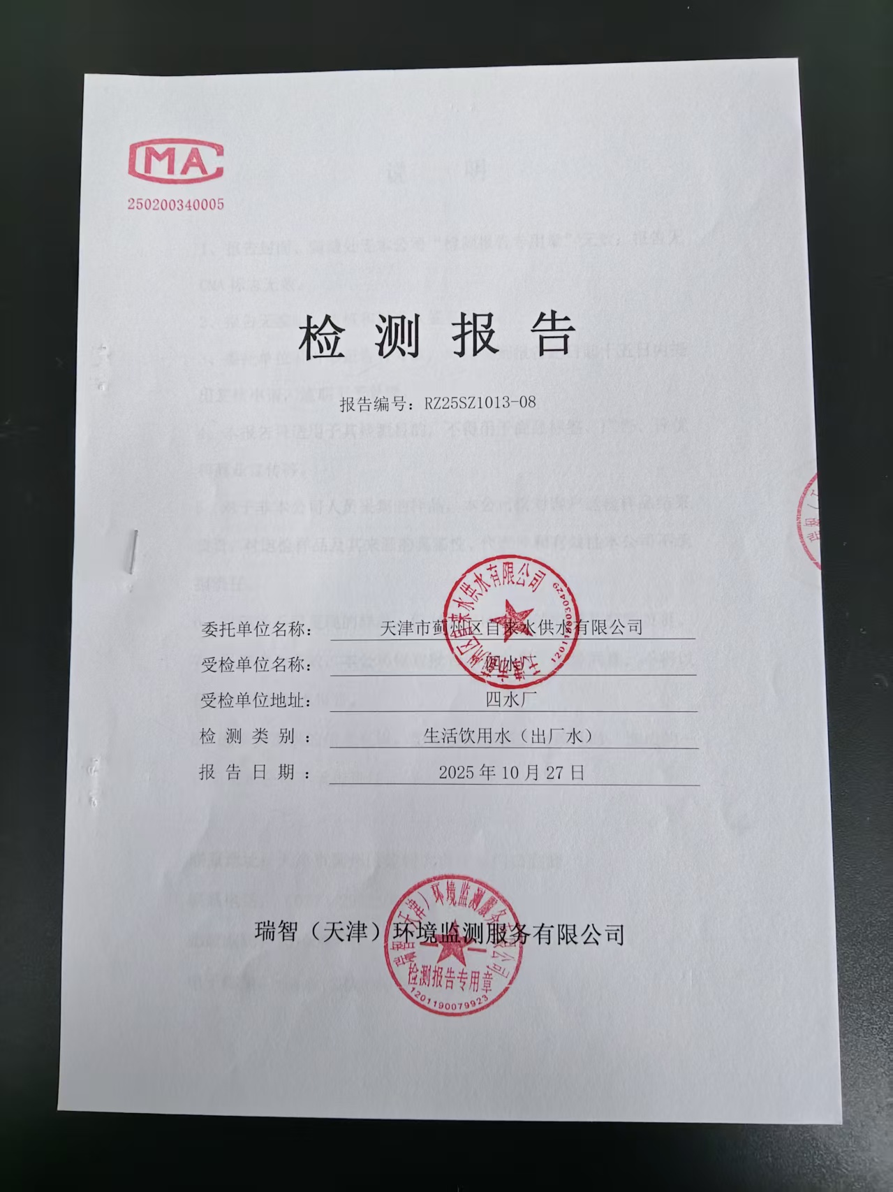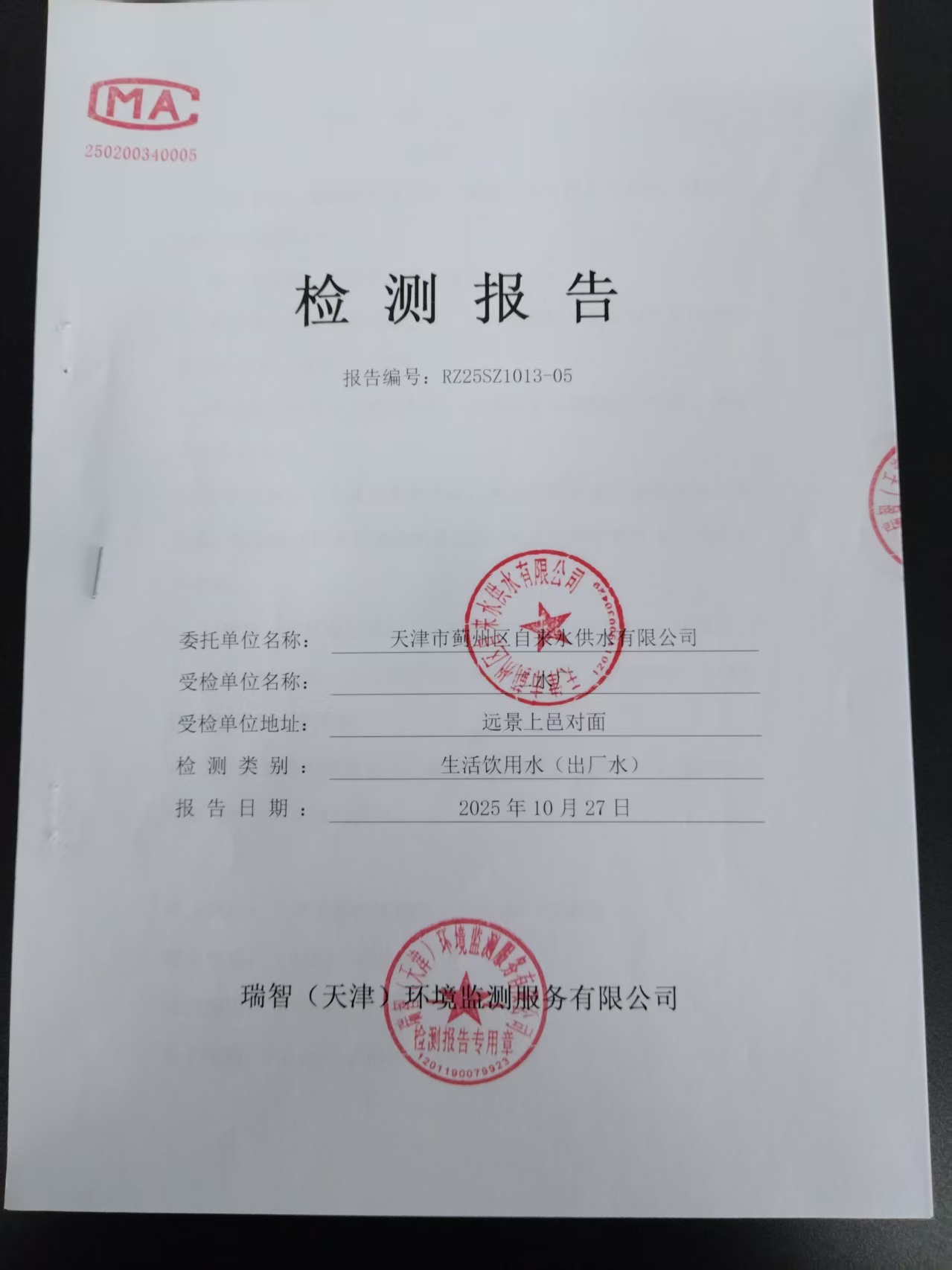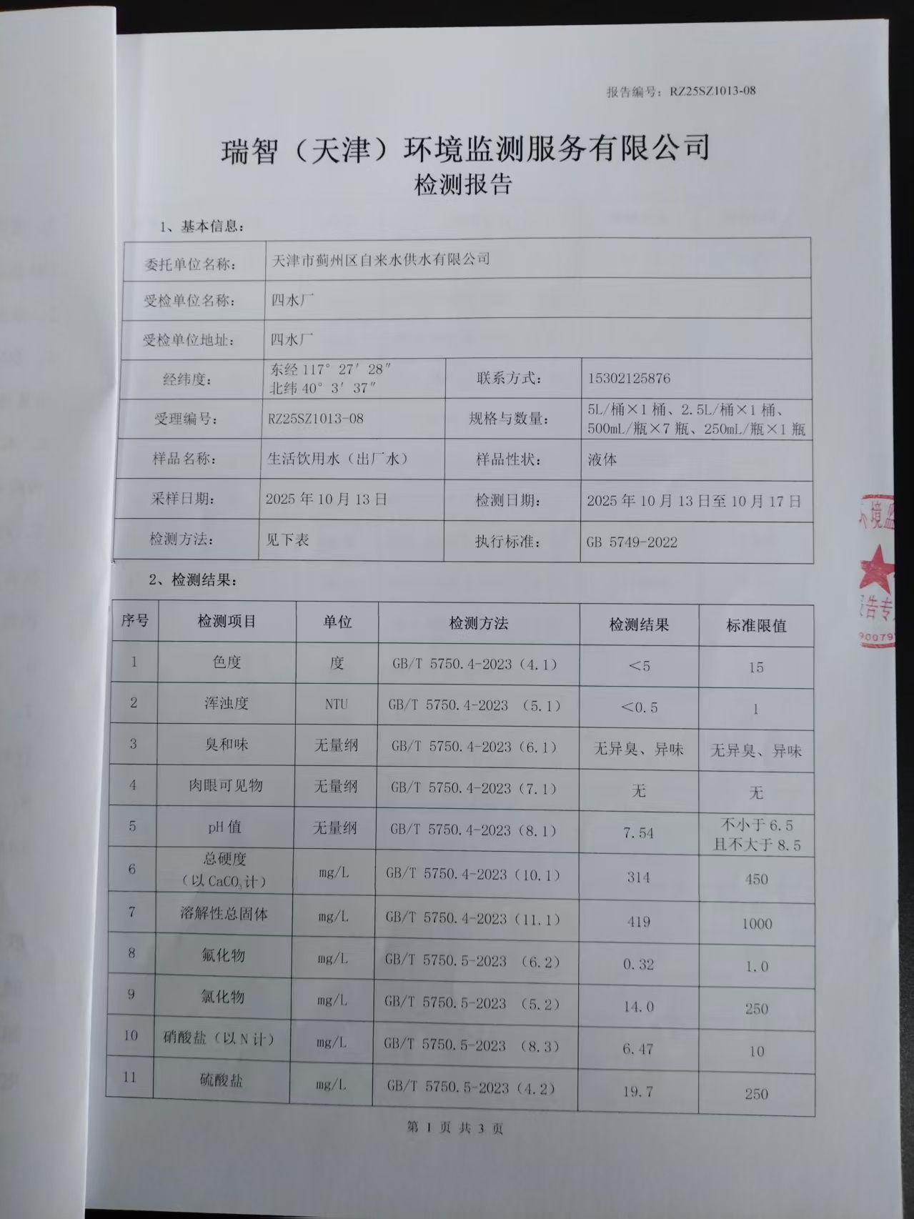 2025年10月份水質(zhì)檢測報告