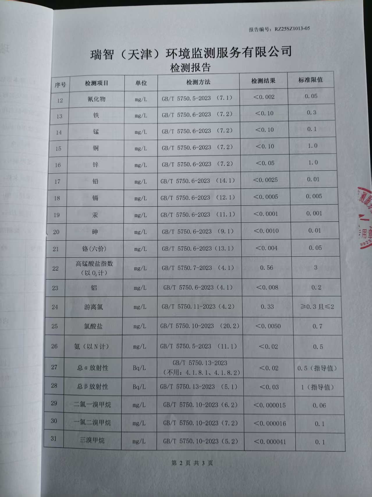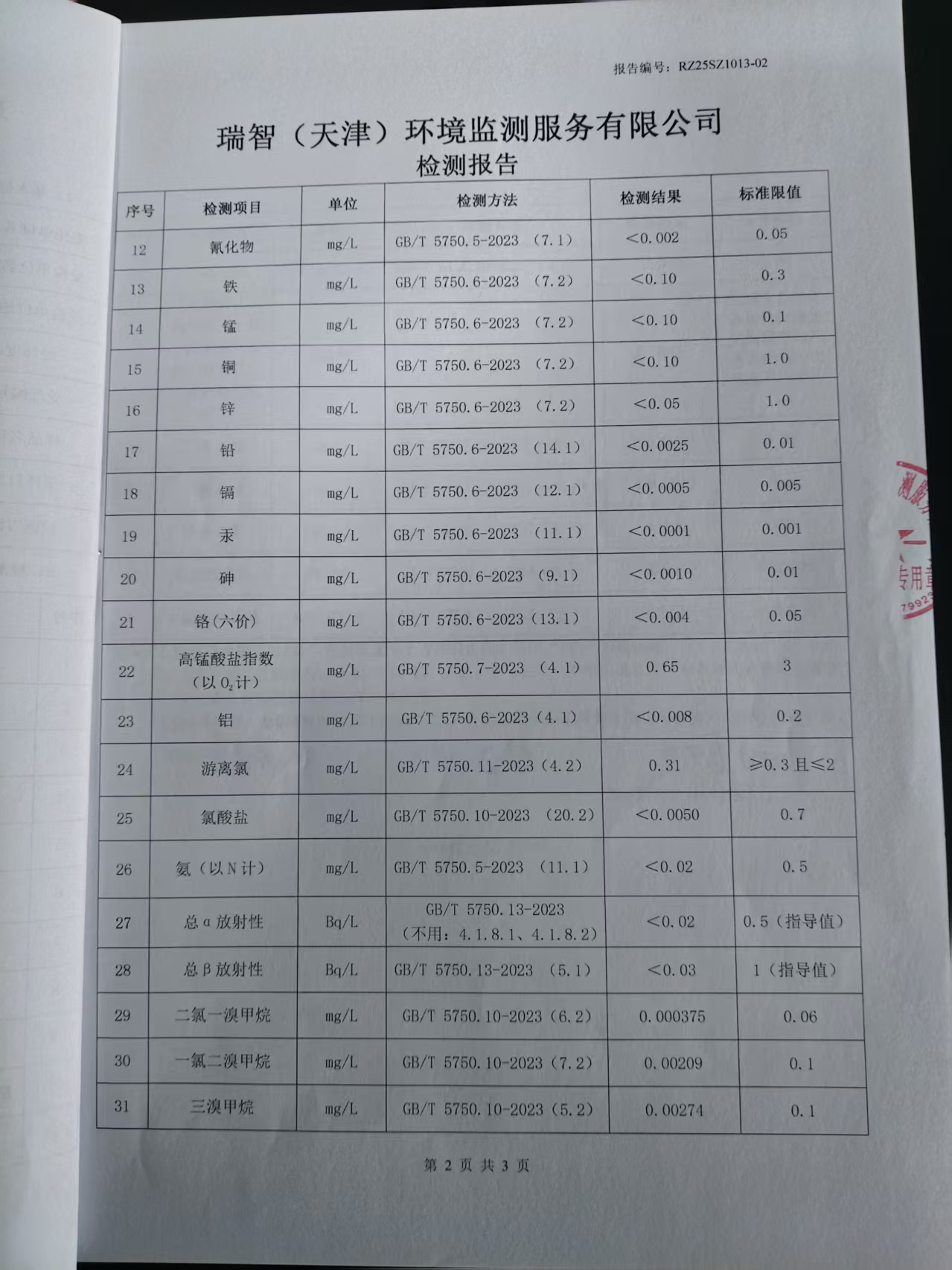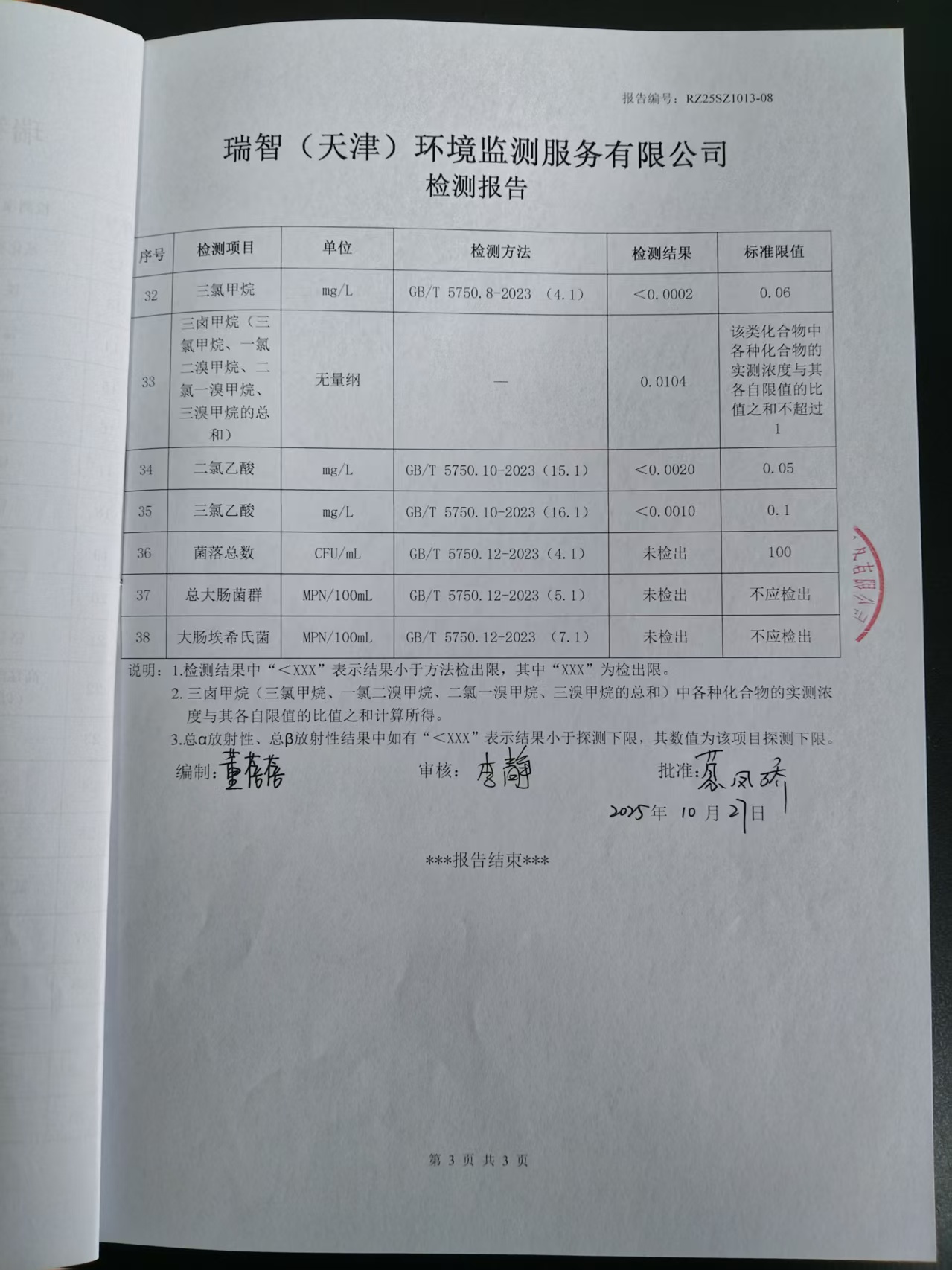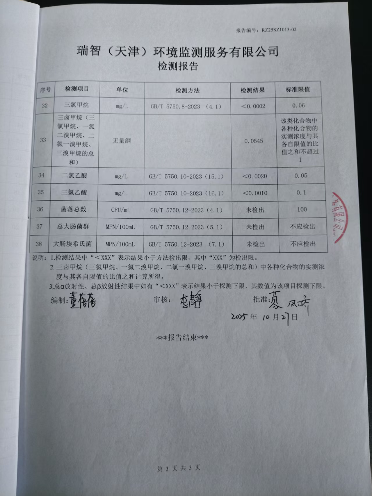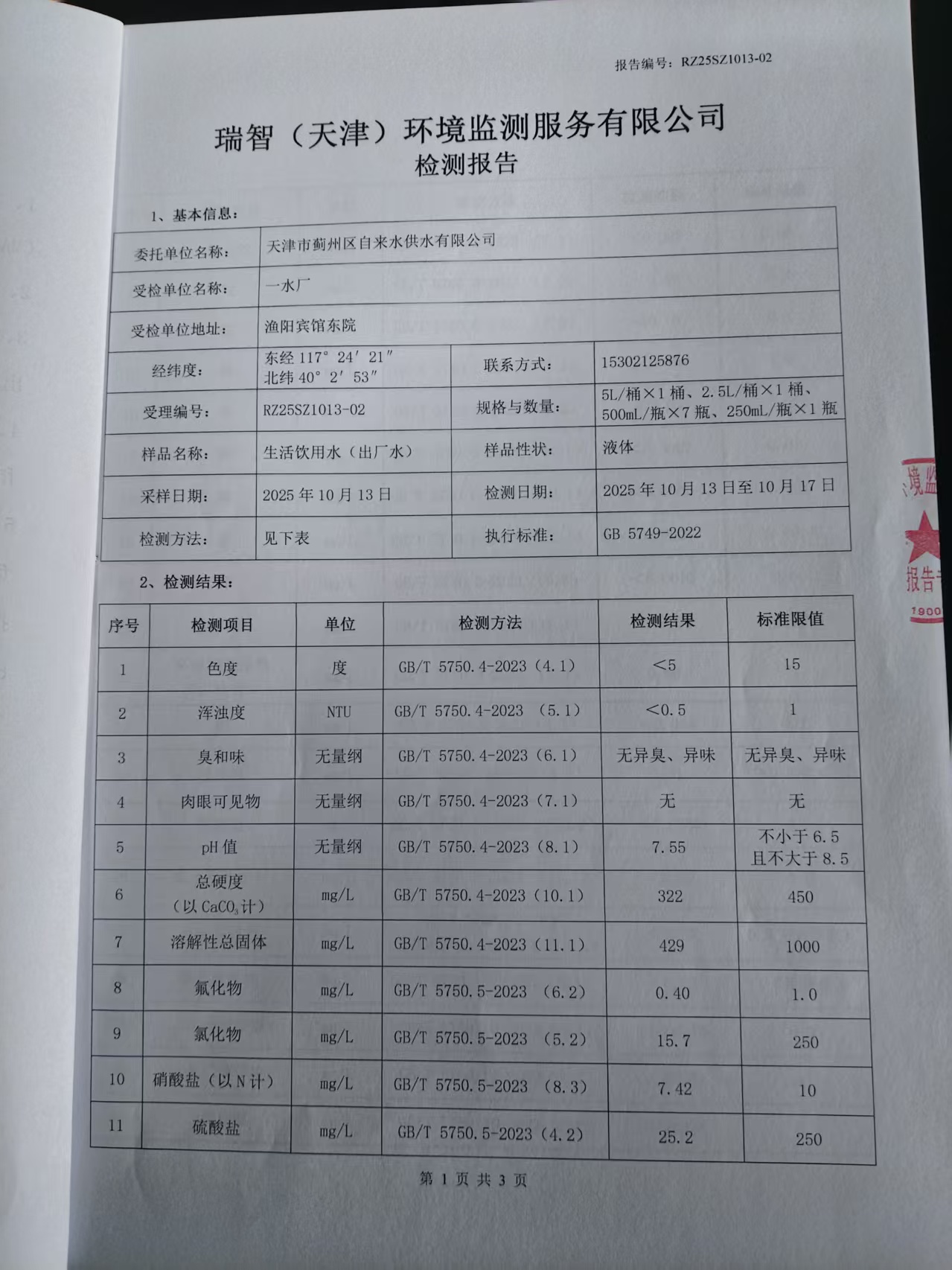 2025年10月份水質(zhì)檢測報告