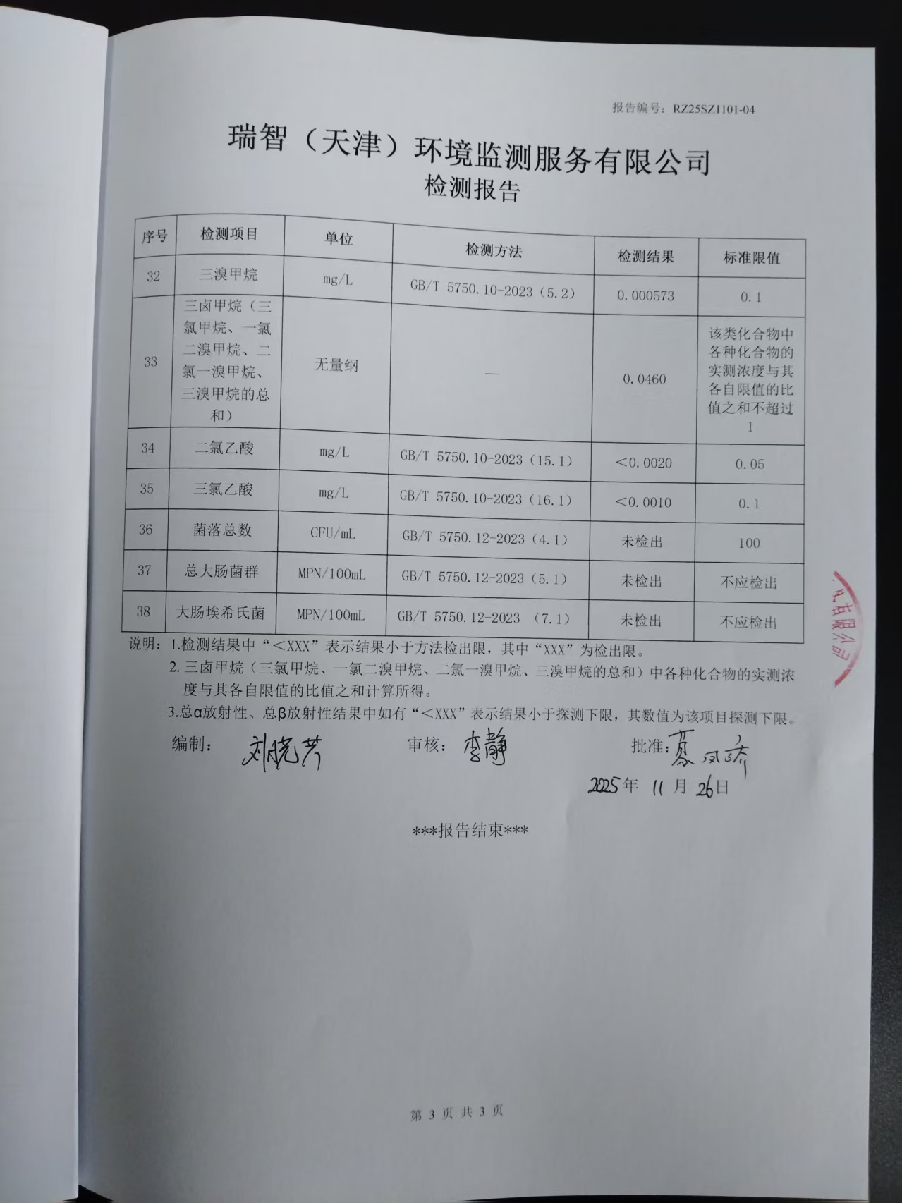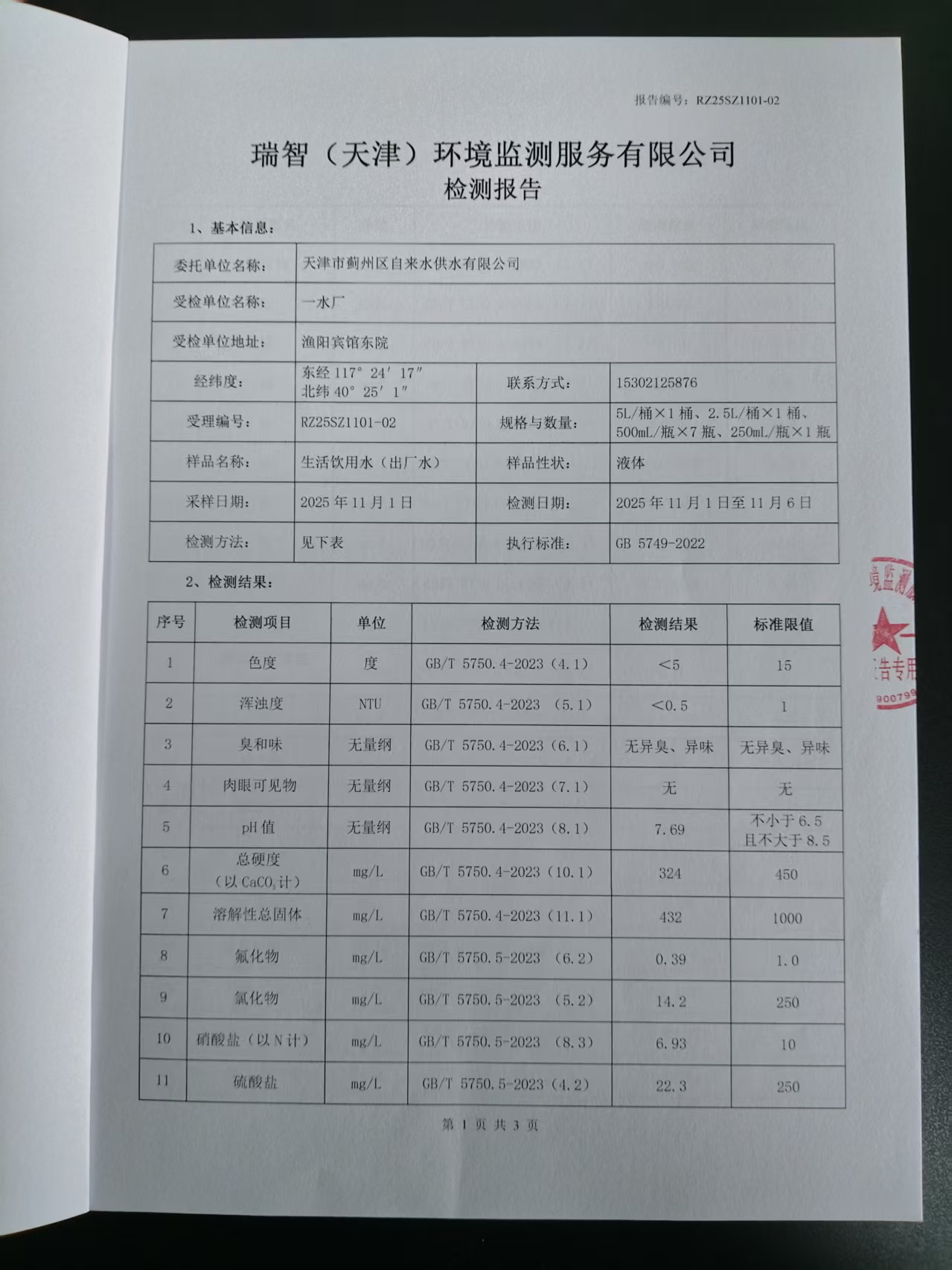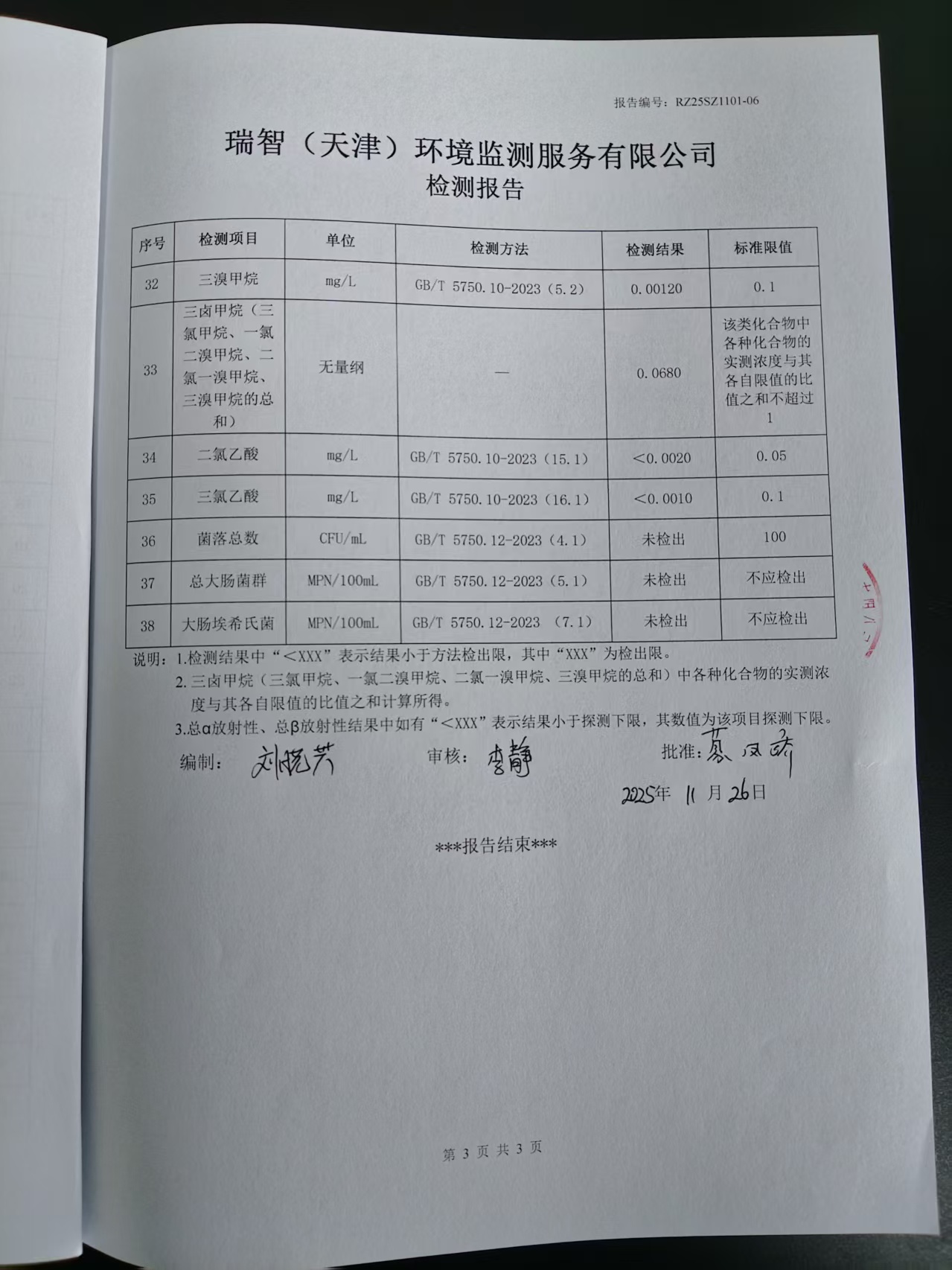 2025年11月份水質(zhì)檢測(cè)報(bào)告
