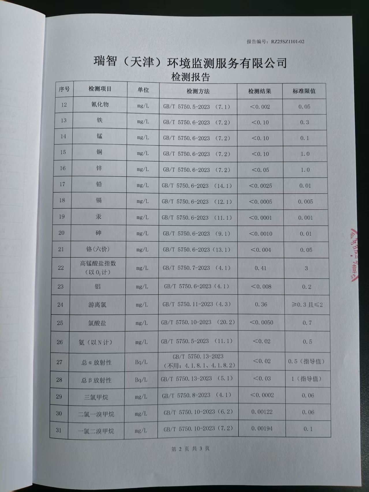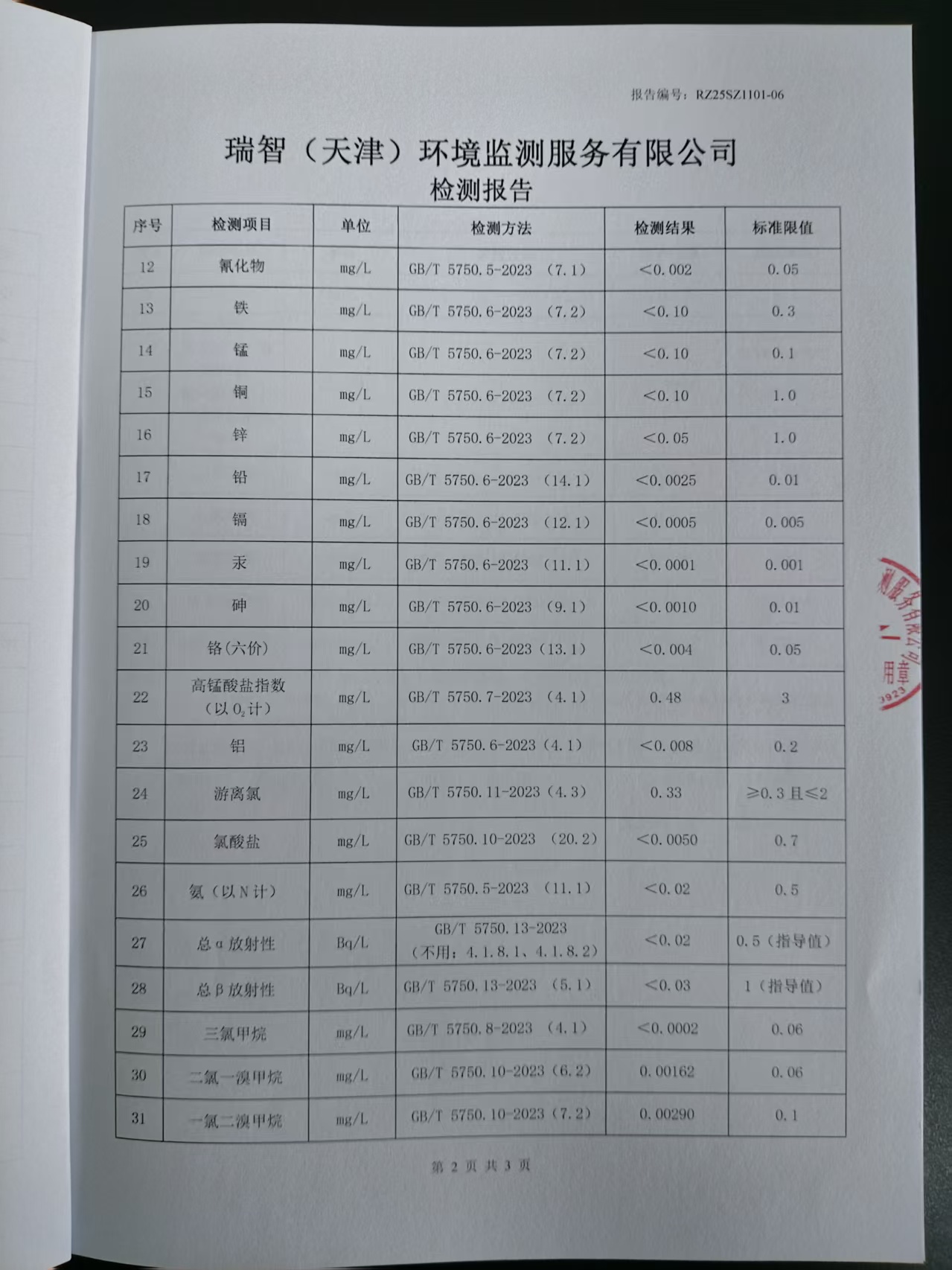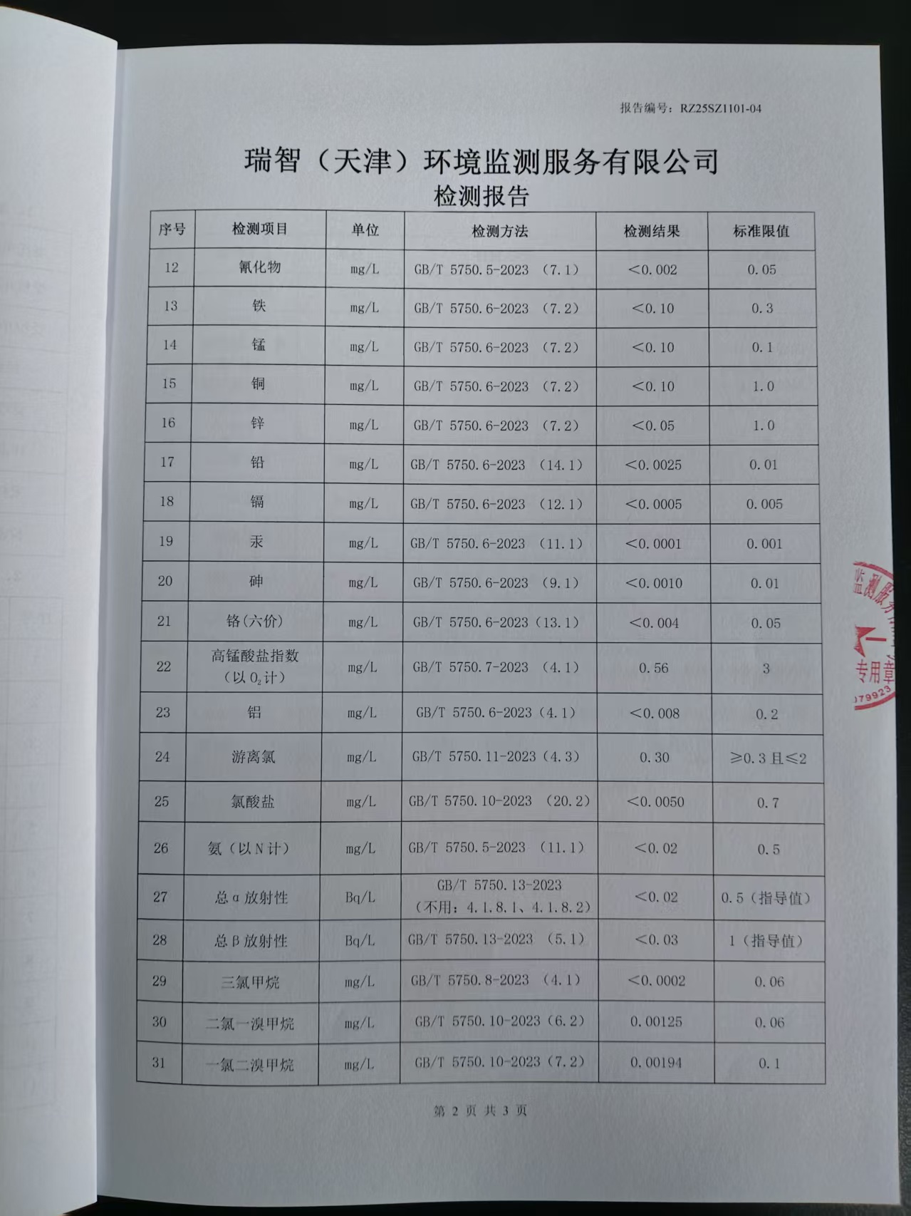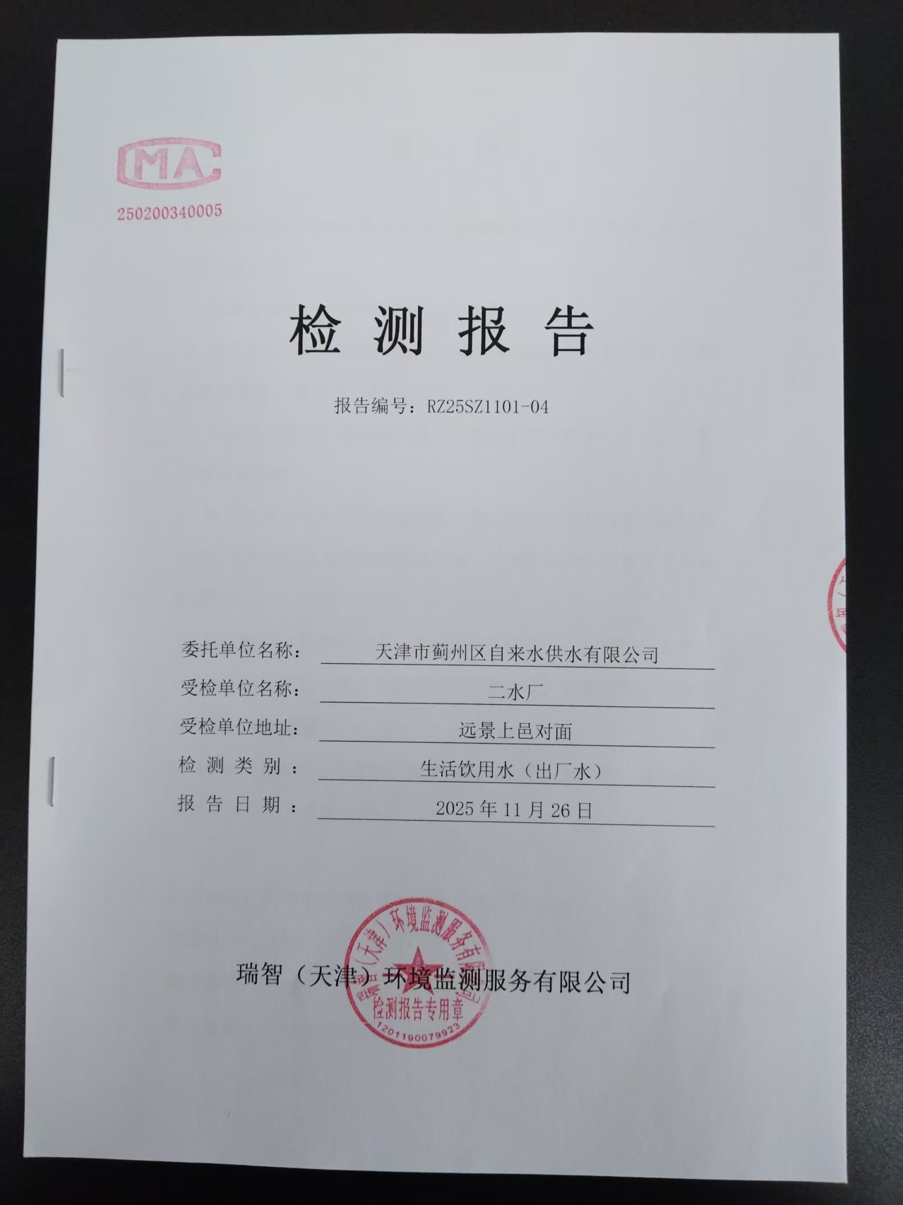 2025年11月份水質(zhì)檢測(cè)報(bào)告
