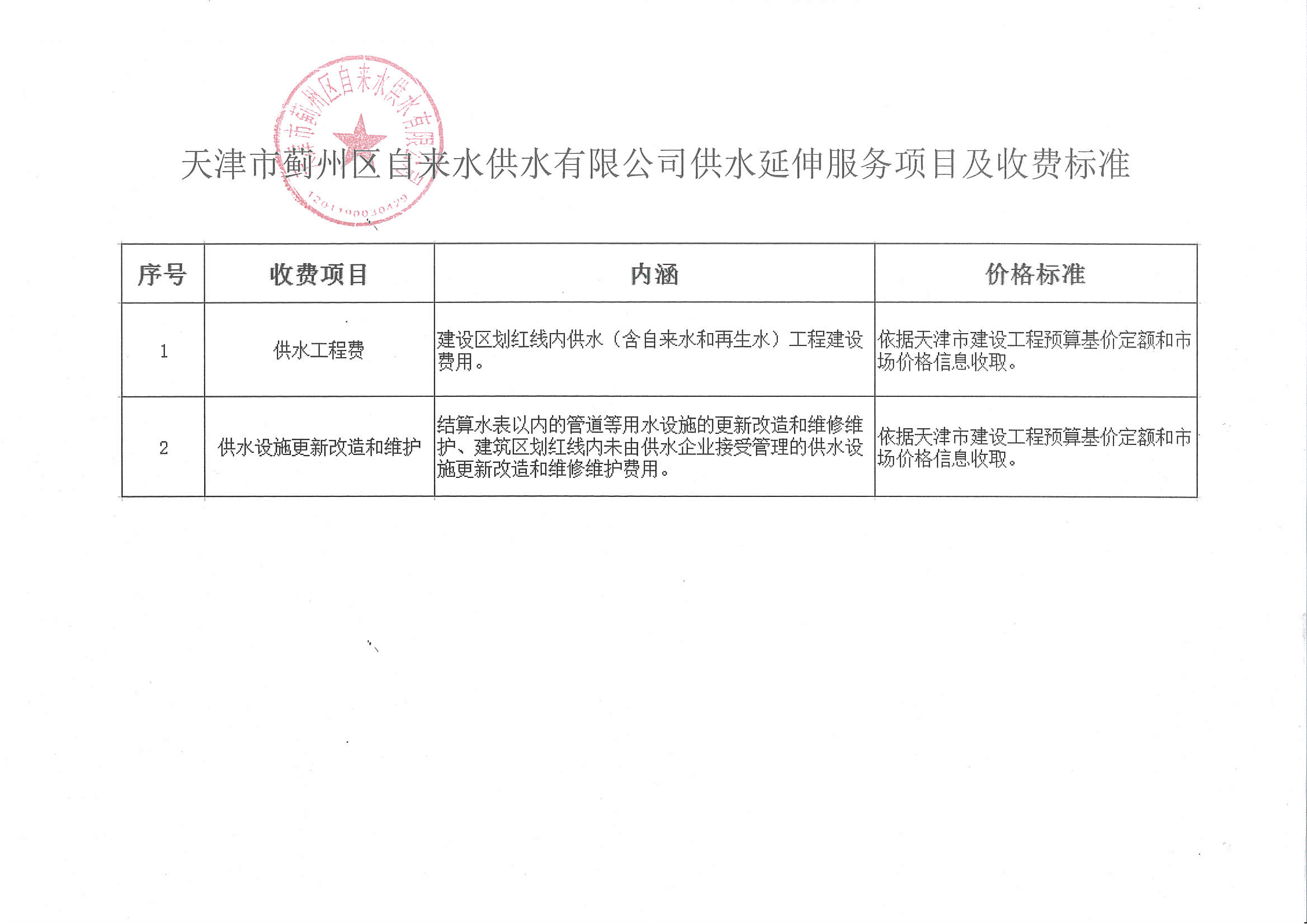 供水延伸服務(wù)項(xiàng)目及收費(fèi)標(biāo)準(zhǔn)