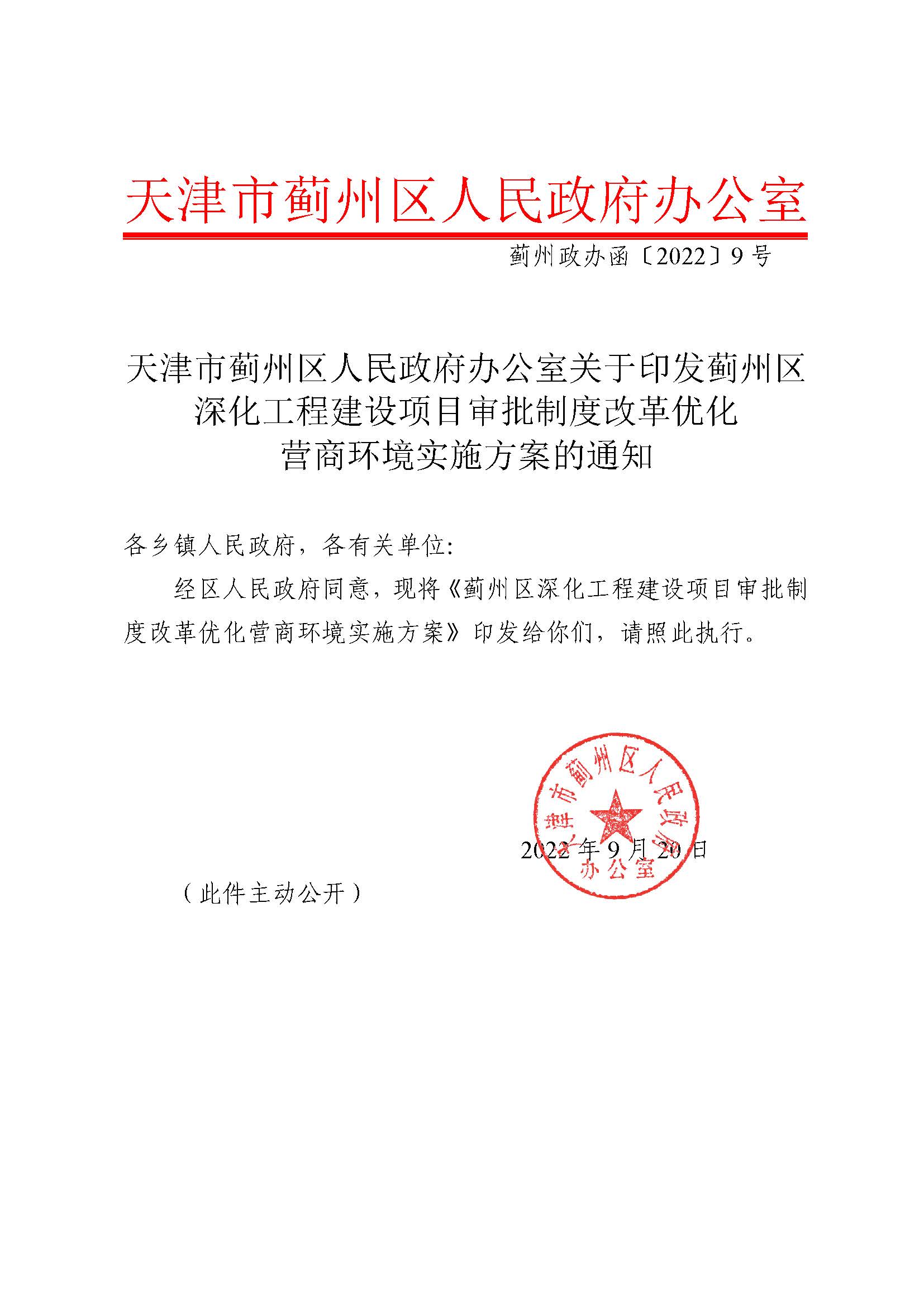 薊州區(qū)優(yōu)化營商環(huán)境實施方案的通知
