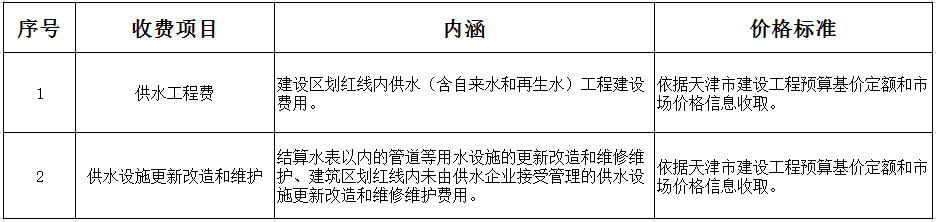 供水工程收費項目清單