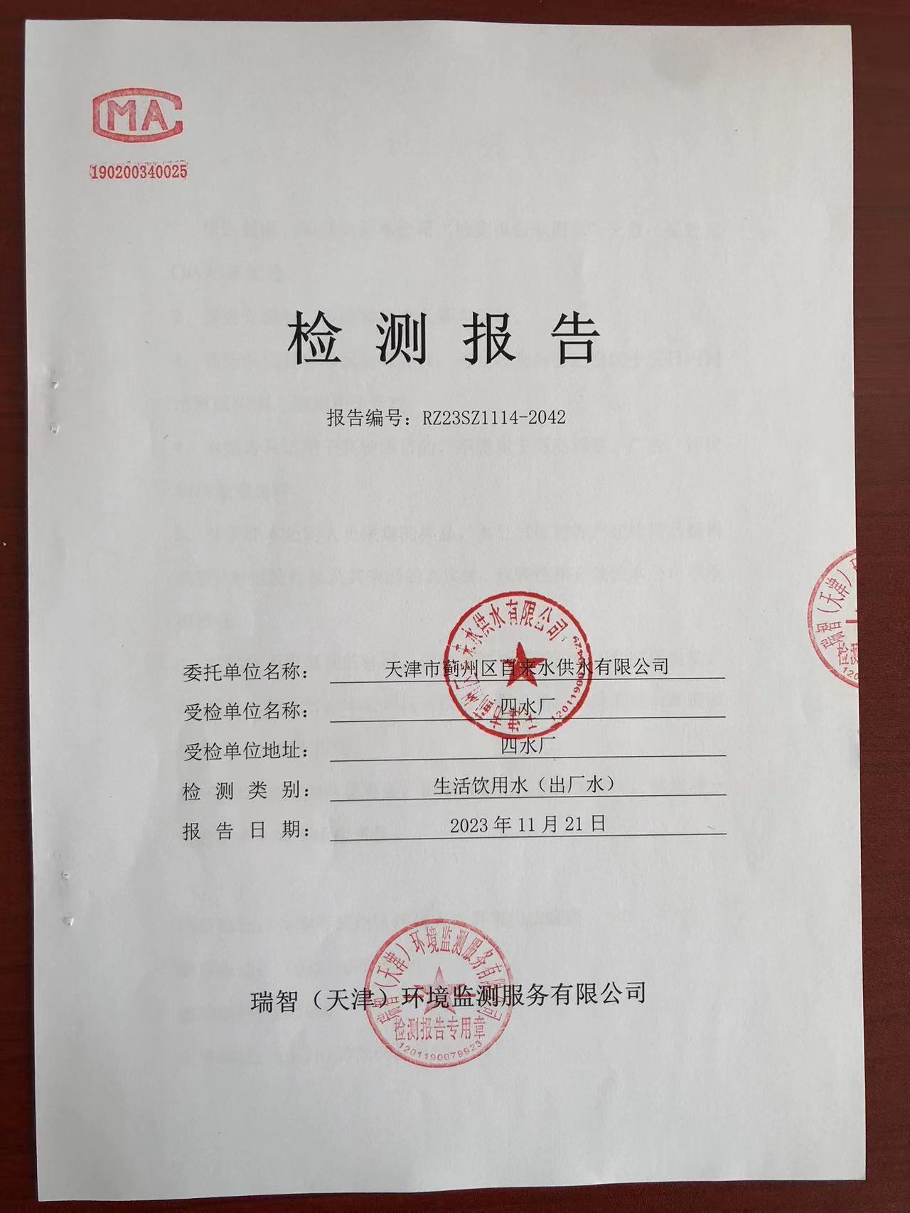 2023年11月份水質(zhì)檢測報告